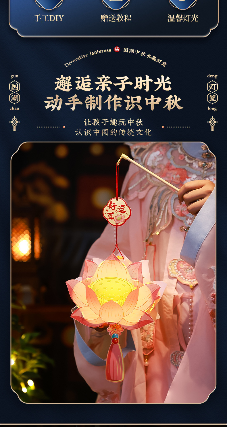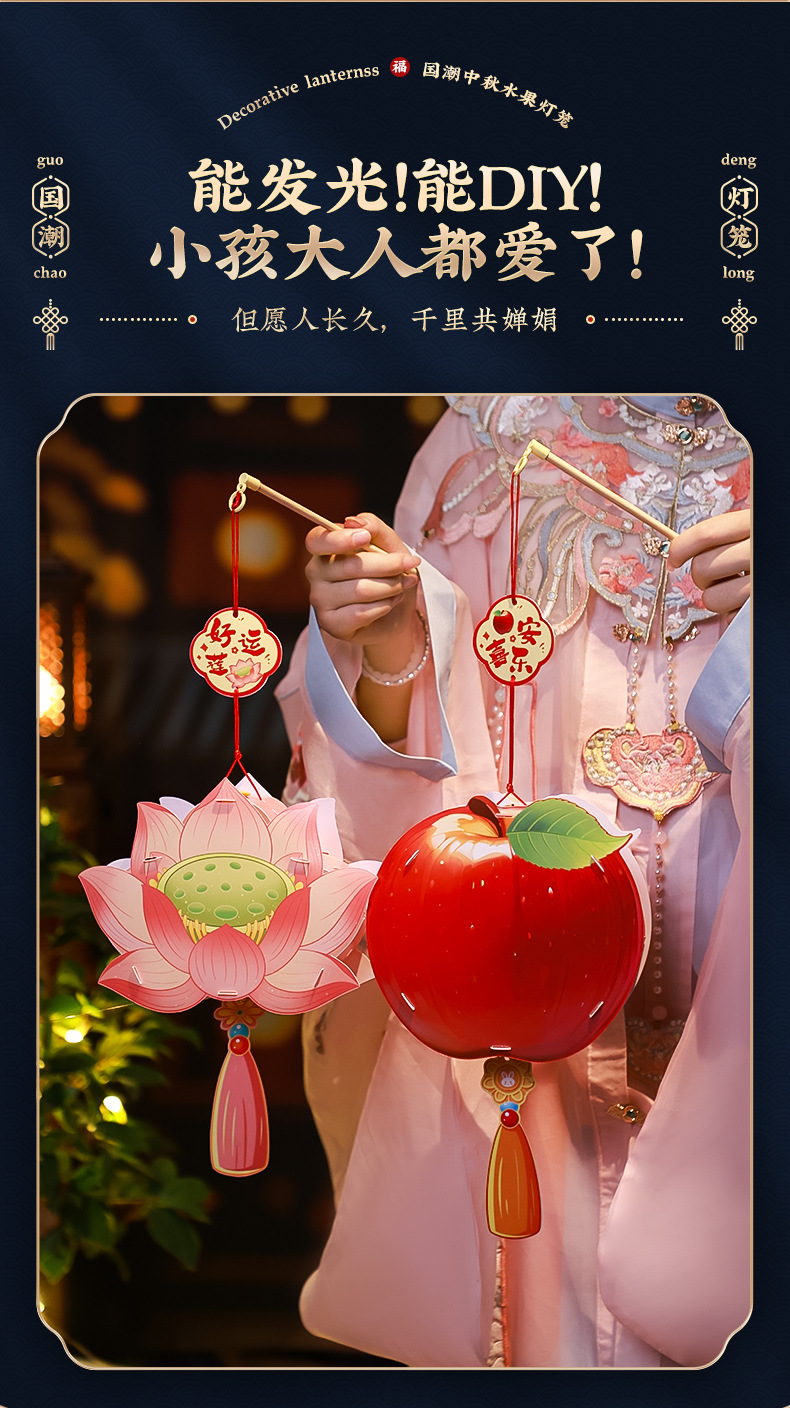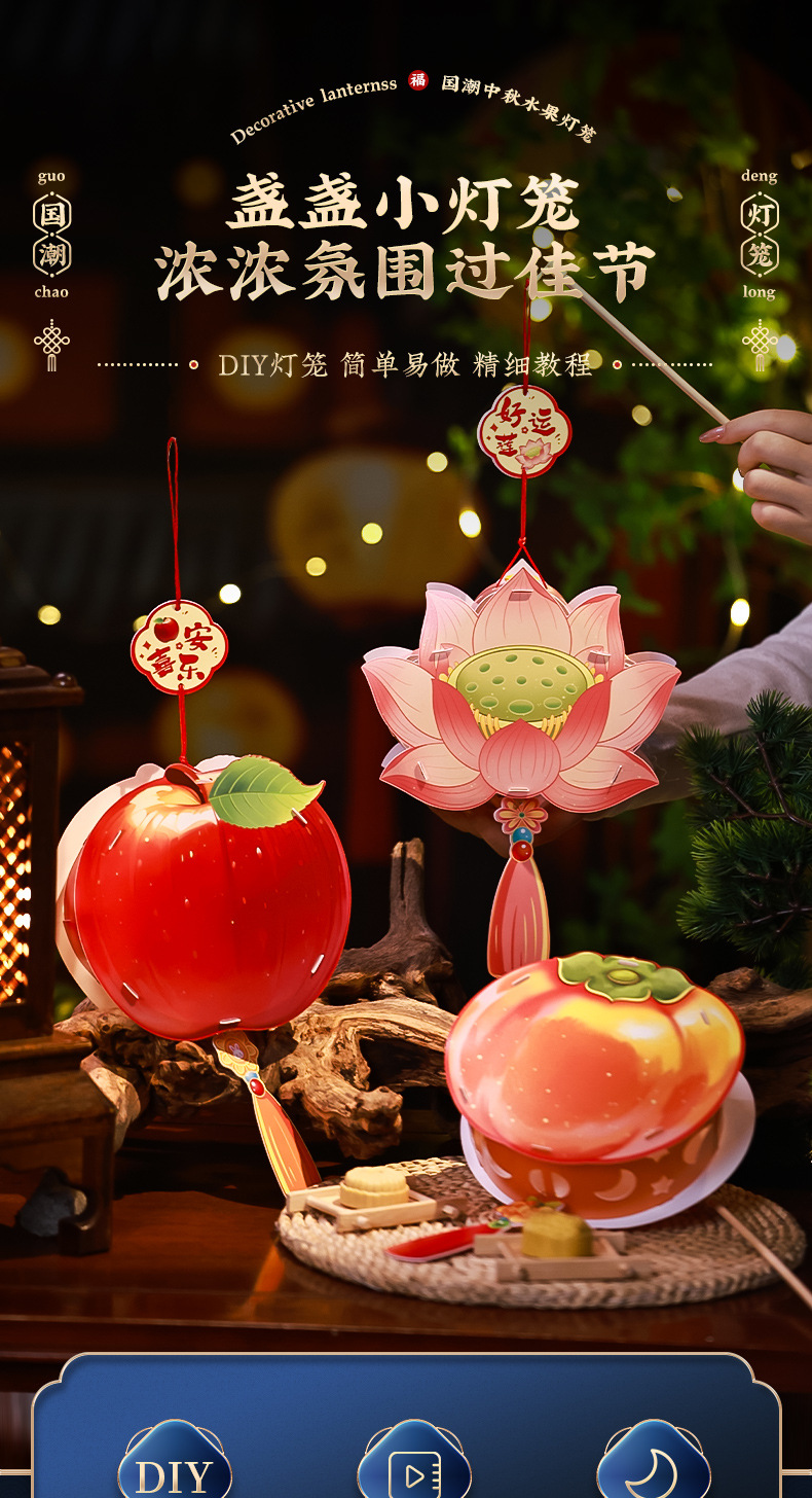 【中秋限定❗️手提水果发光花灯】好运莲莲+柿柿如意+大吉大梨+苹安喜乐,好寓意,认识中国的传统文化!中秋节小灯笼2025新款儿童 幼儿园手工diy材料包