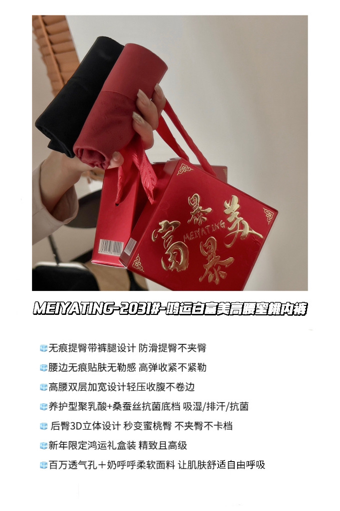 【暴好运❗️鸿运蜜桃内裤礼盒套装】新年高腰蜜桃臀,好运满满,暴富暴美❗️高腰红色无痕大红少女内裤本命年女提臀女士三角裤子新年礼盒年货礼盒