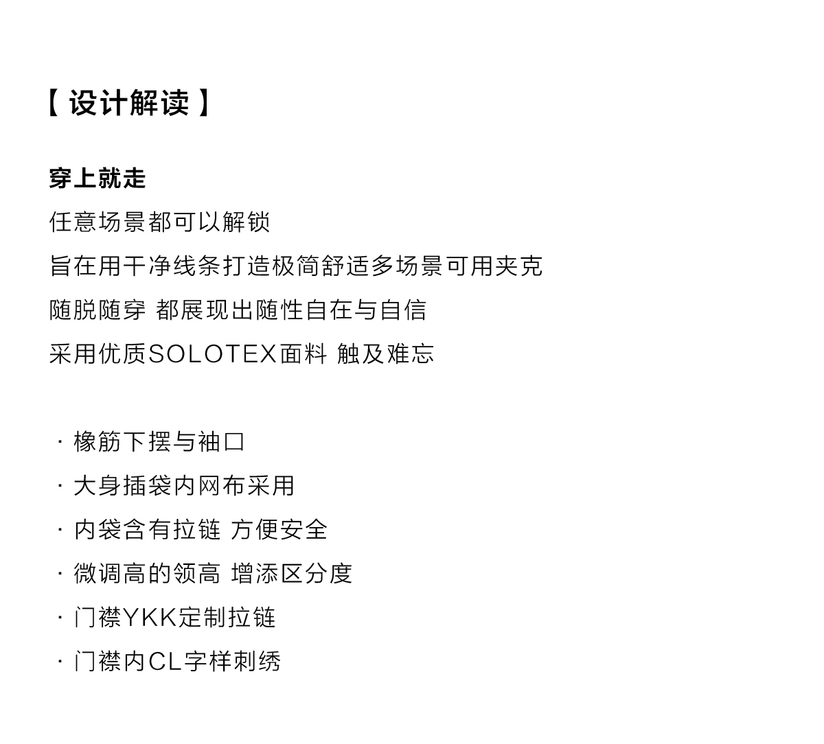 棉仓3521011001-【穿上就走】SOLOTEX防泼水抗皱舒适立领教练夹克