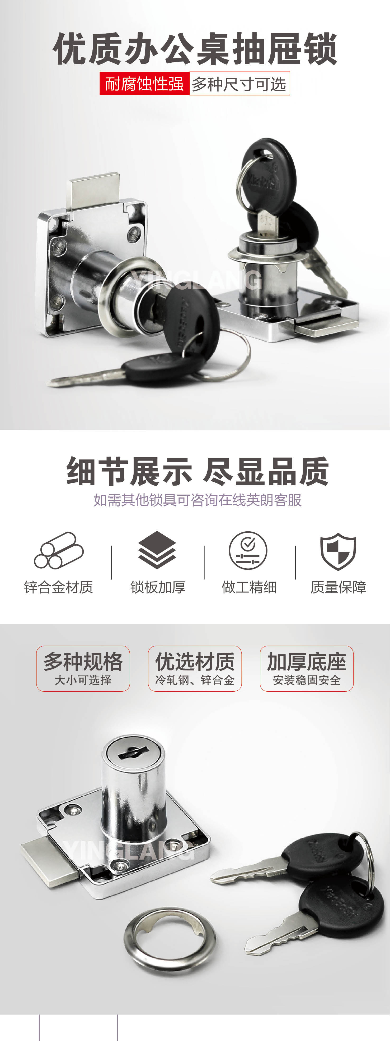 〖A209〗小博士锌合金138-22A抽屉锁