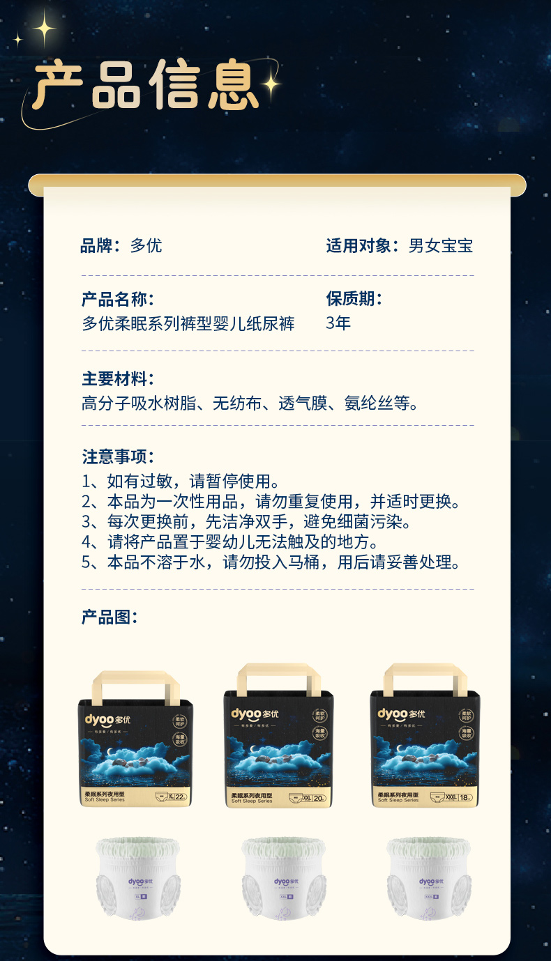 Dyoo多优牌柔眠系列裤型婴儿纸尿裤(XL-XXXL)