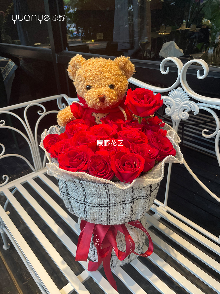 【守护的爱】19支红玫瑰抱抱熊