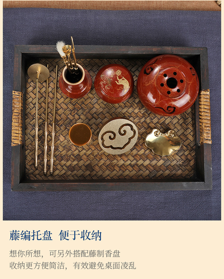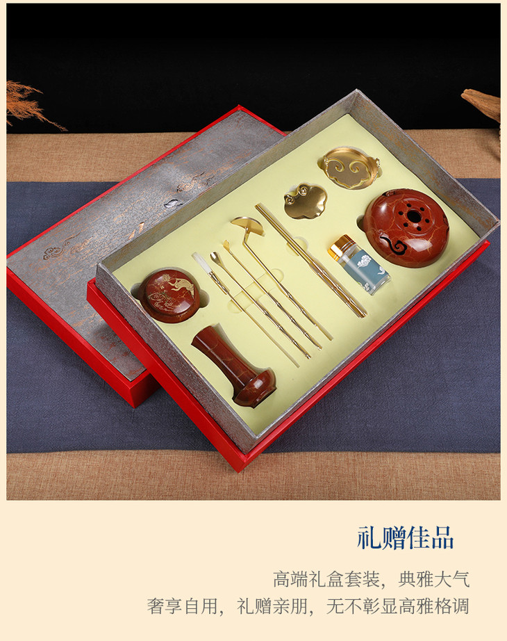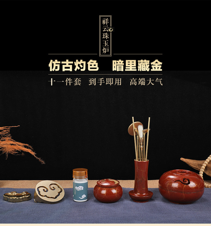 【吉祥如意】纯铜香道11件套纯铜香道香篆套装 入门香模打拓香拓香篆炉檀香炉 祥云珠玉新款香道套装