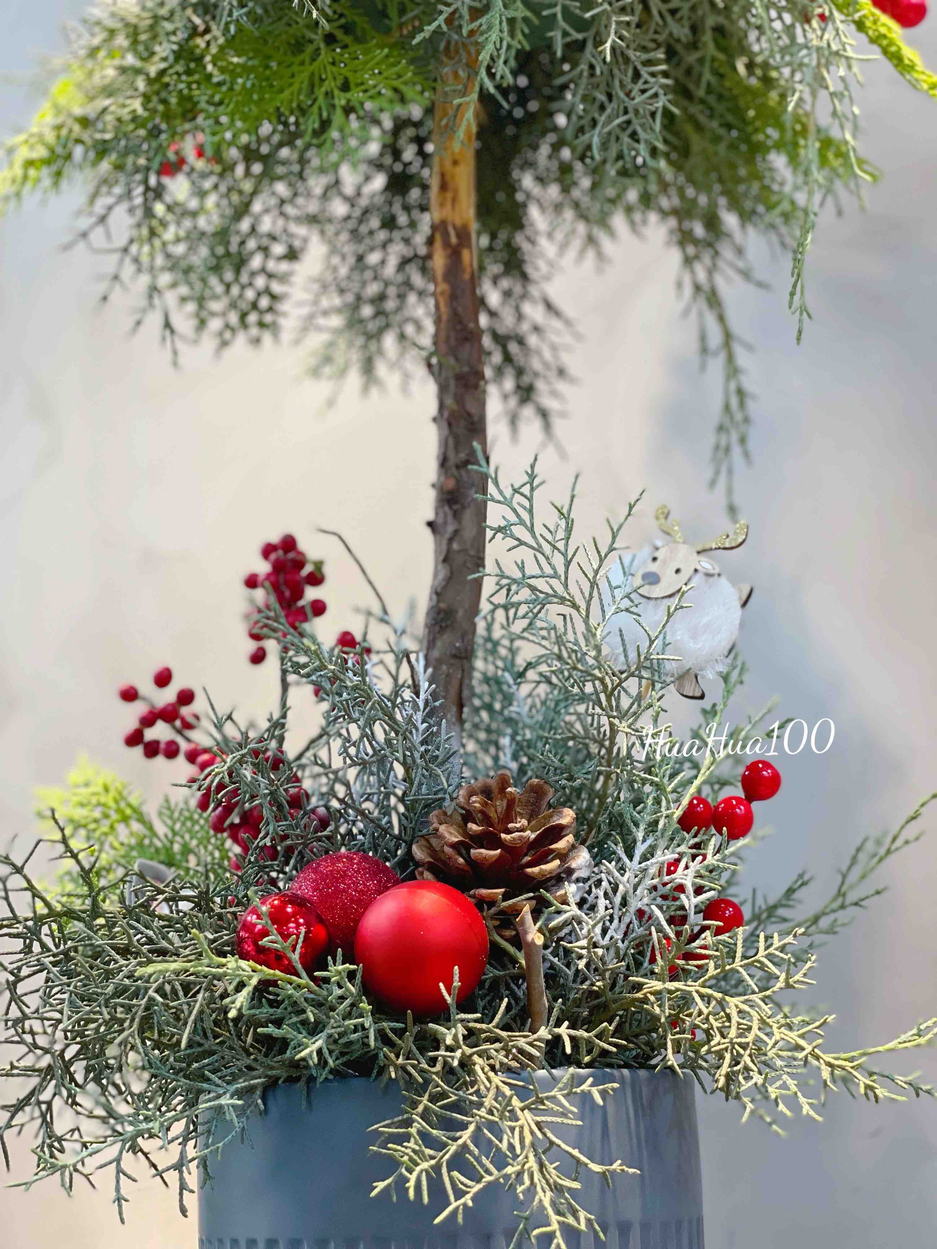主花:松枝、圣诞果、松果、棉花、冬青、动物小配饰