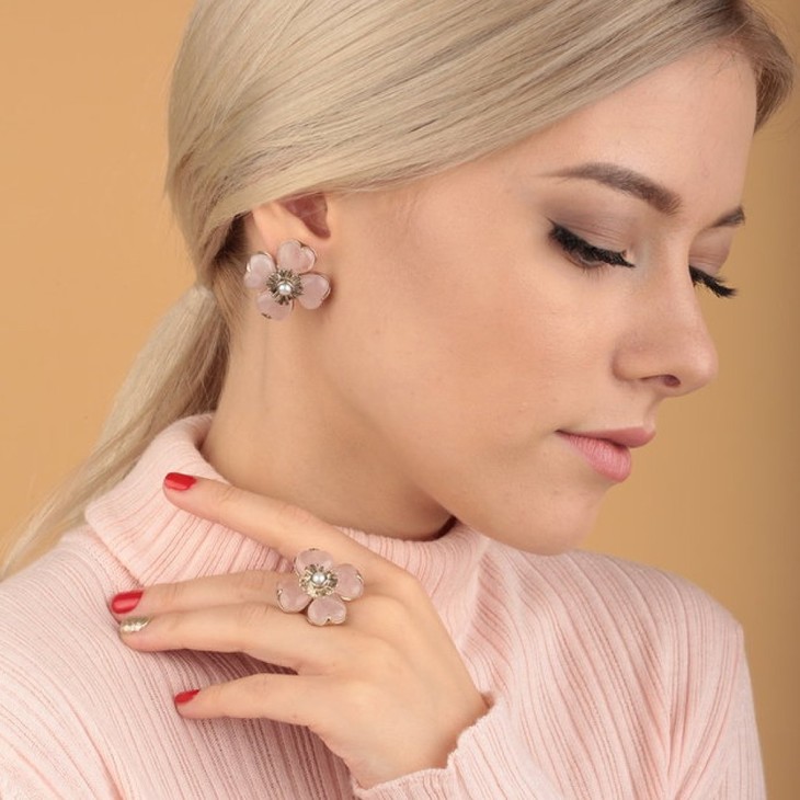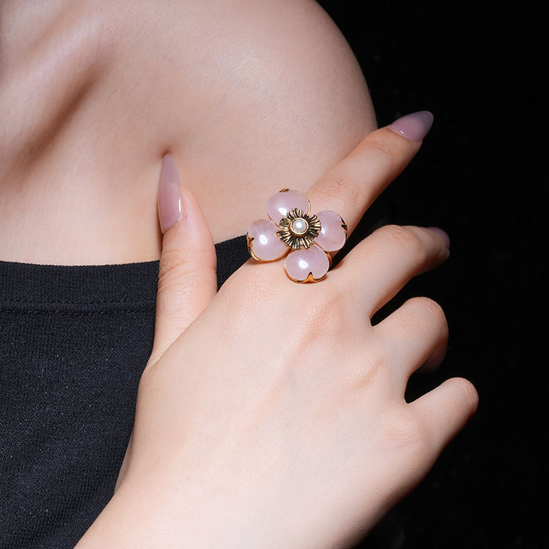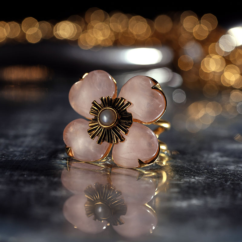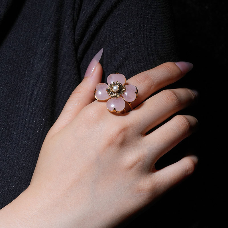 北京仓|Goossens Paris-Trefle-天然粉色石英 珍珠 戒指[法国设计师]
