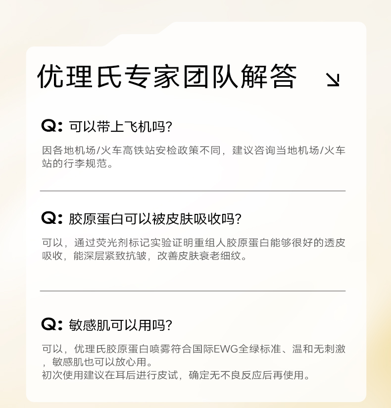 优理氏双胶原蛋白肽喷雾紧致抗老 填充胶原 焕活肌肤