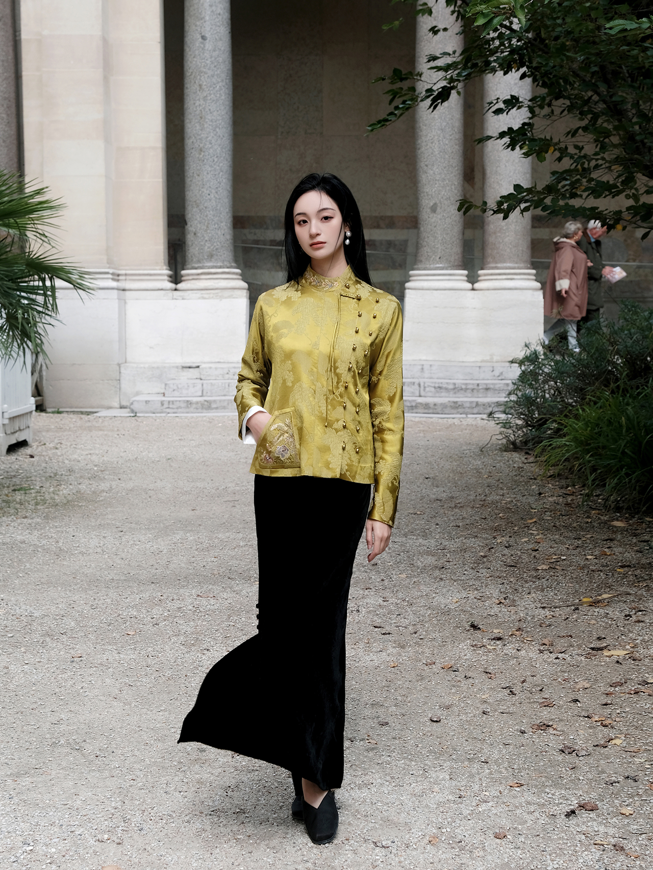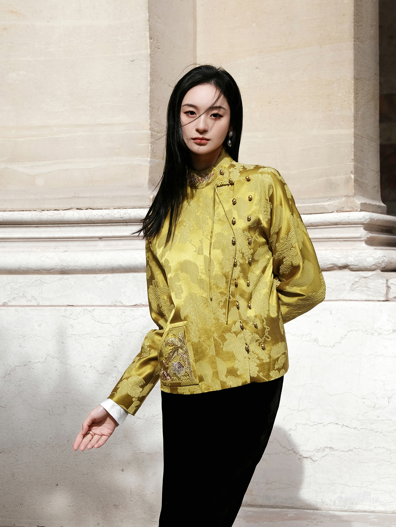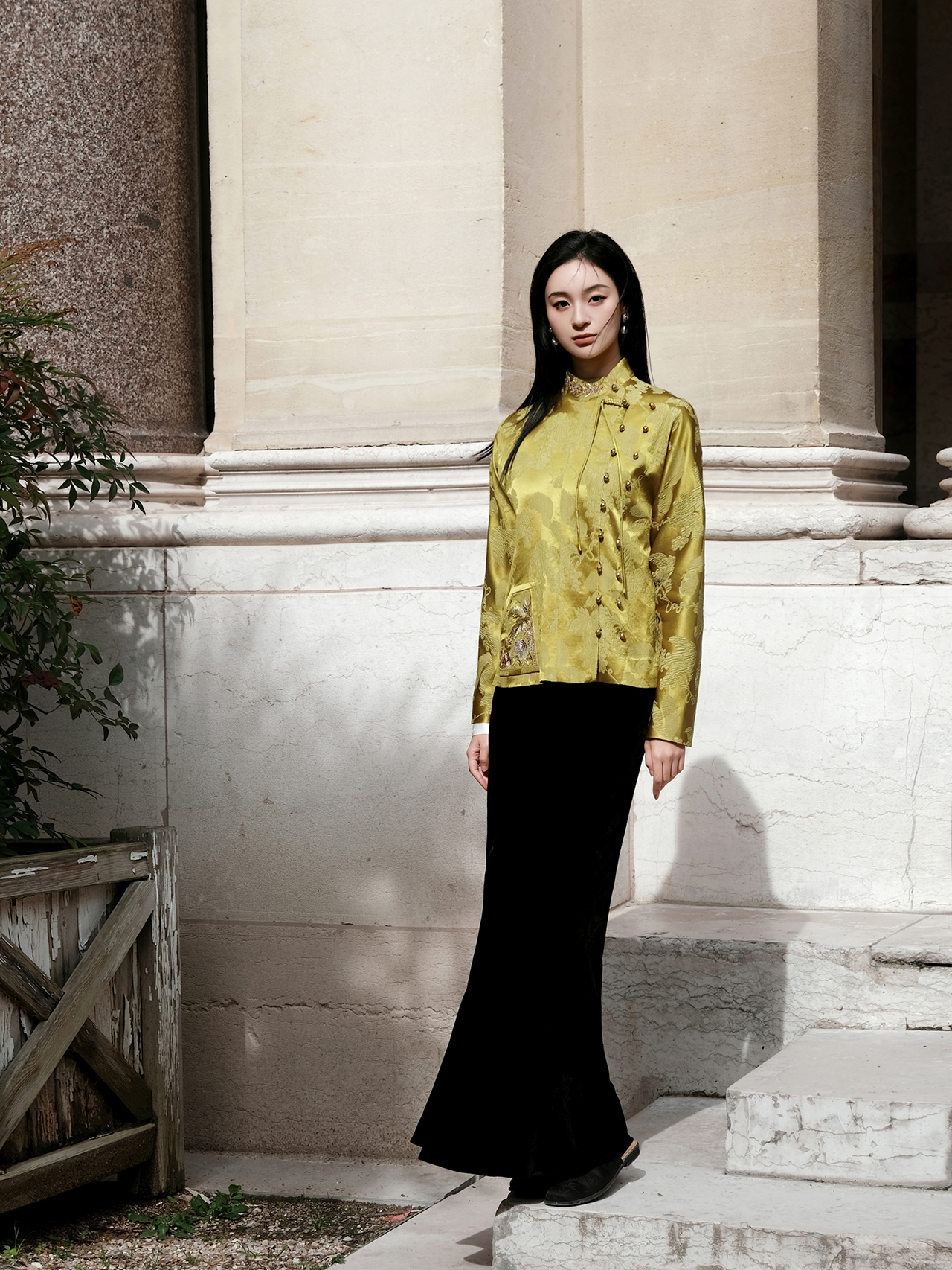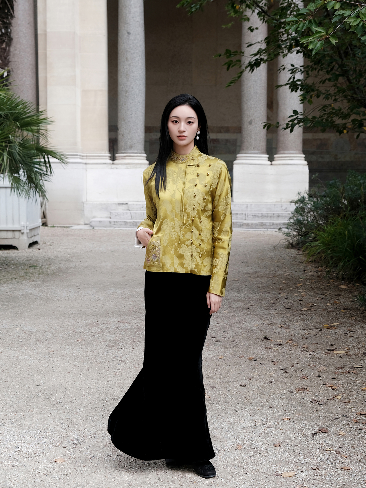 东方境X郭培| 芥末黄刺绣提花新中式上衣