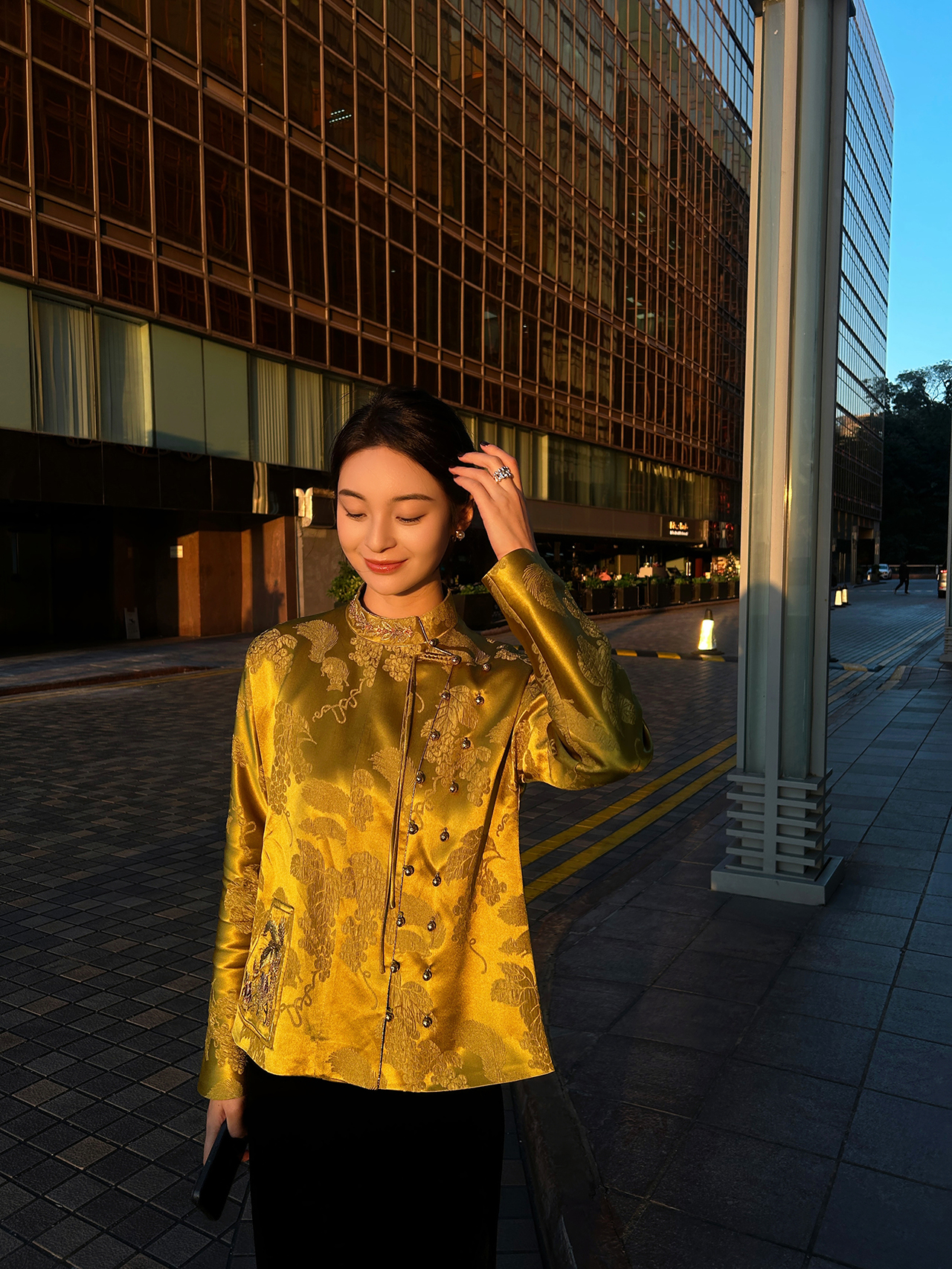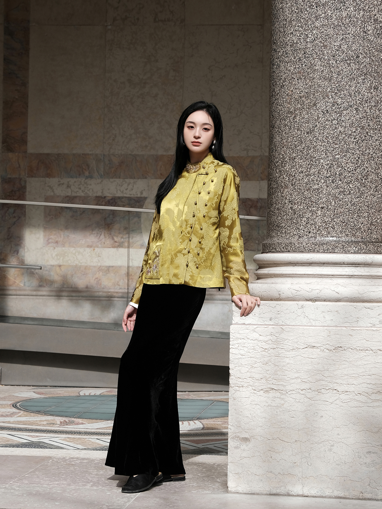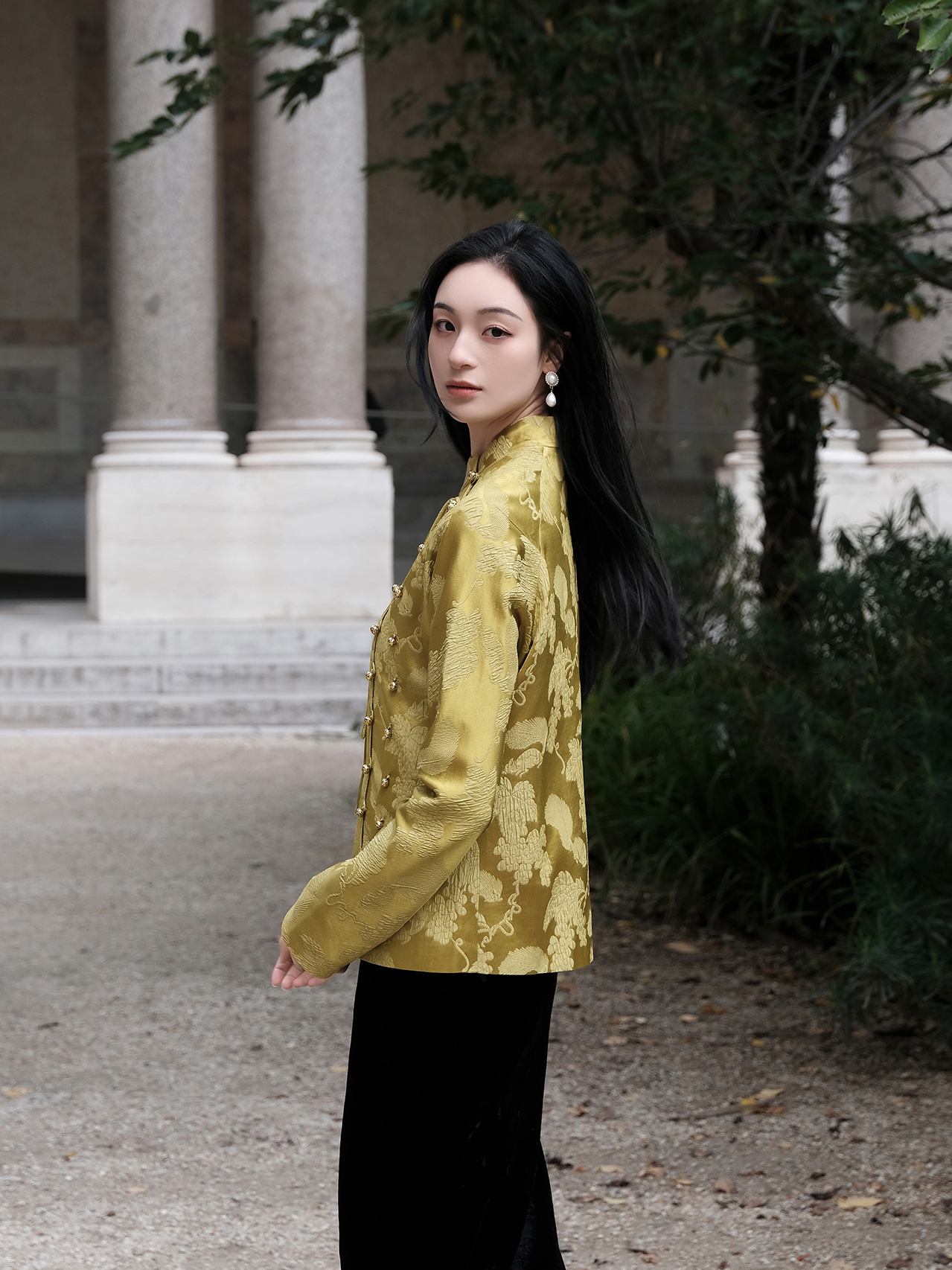 东方境X郭培| 芥末黄刺绣提花新中式上衣