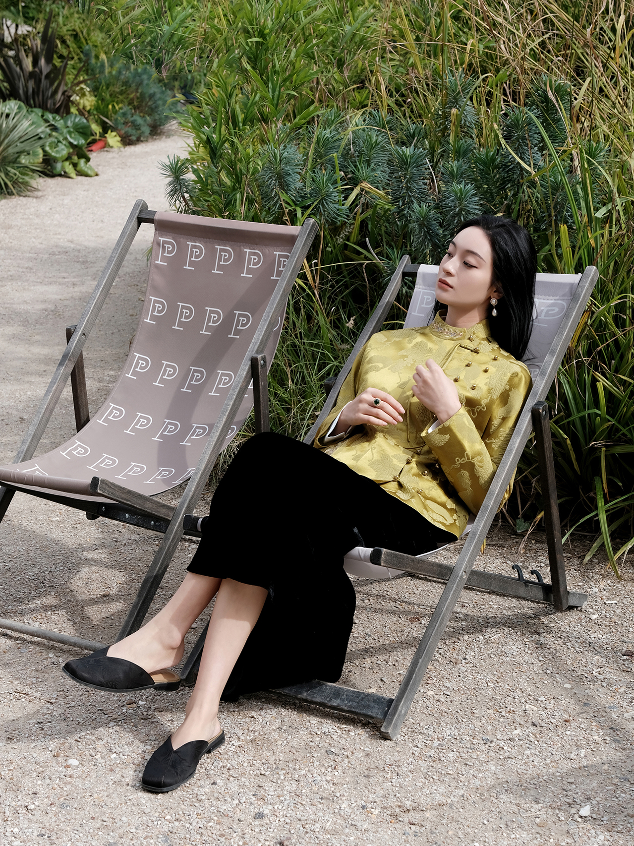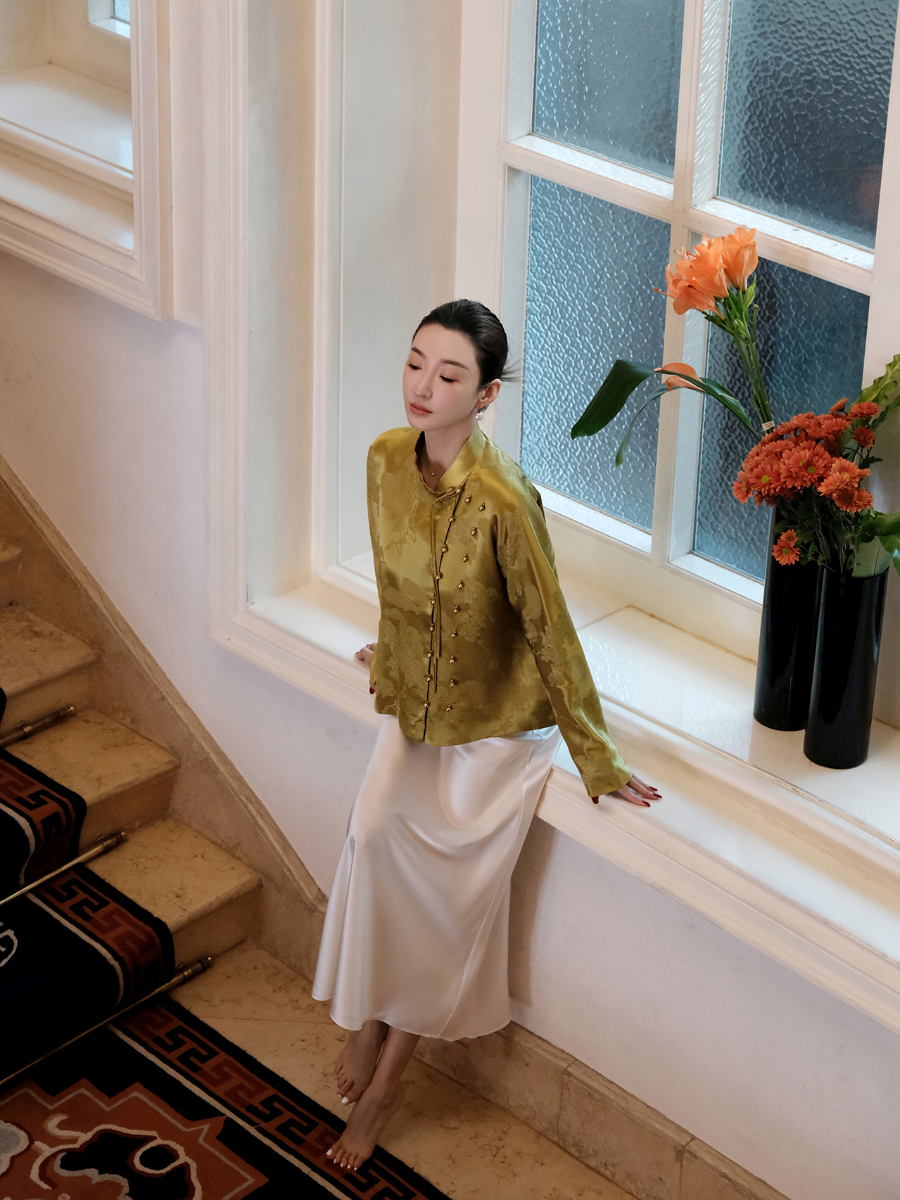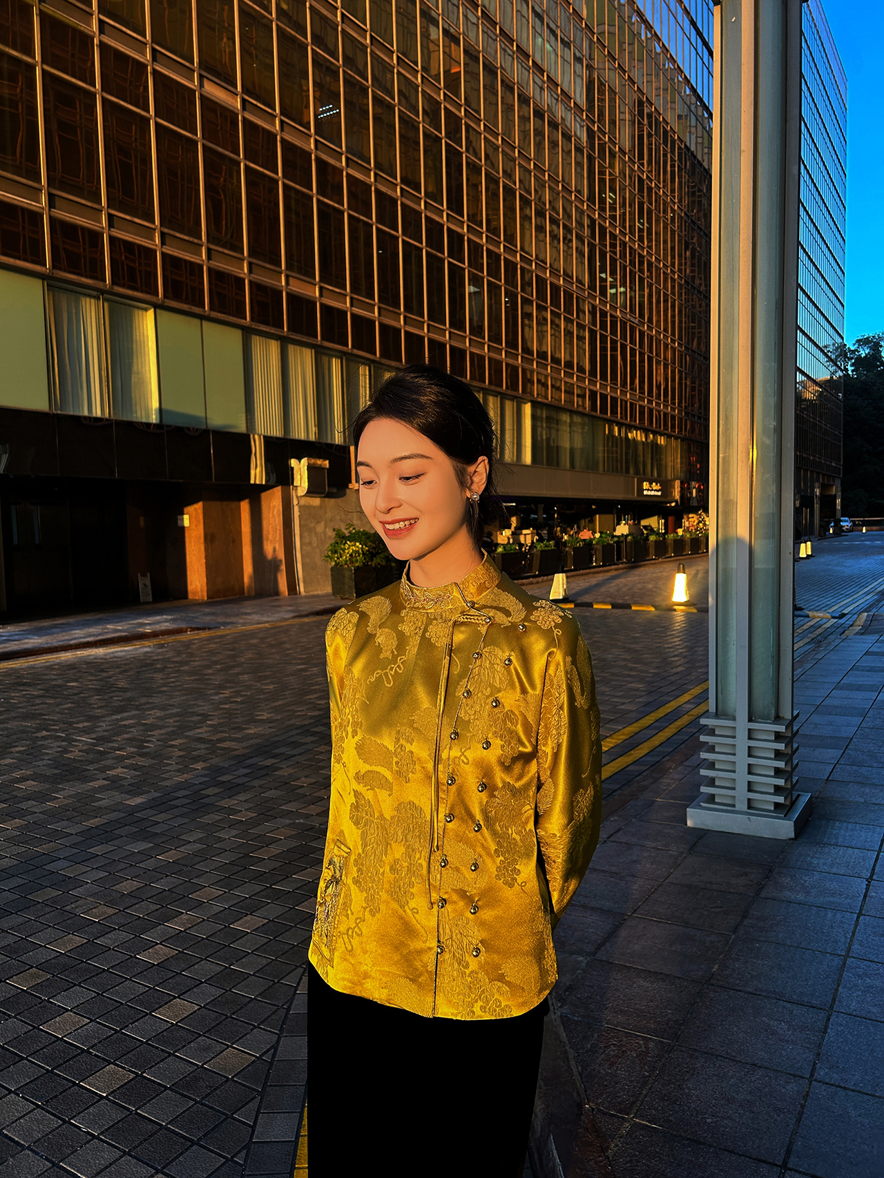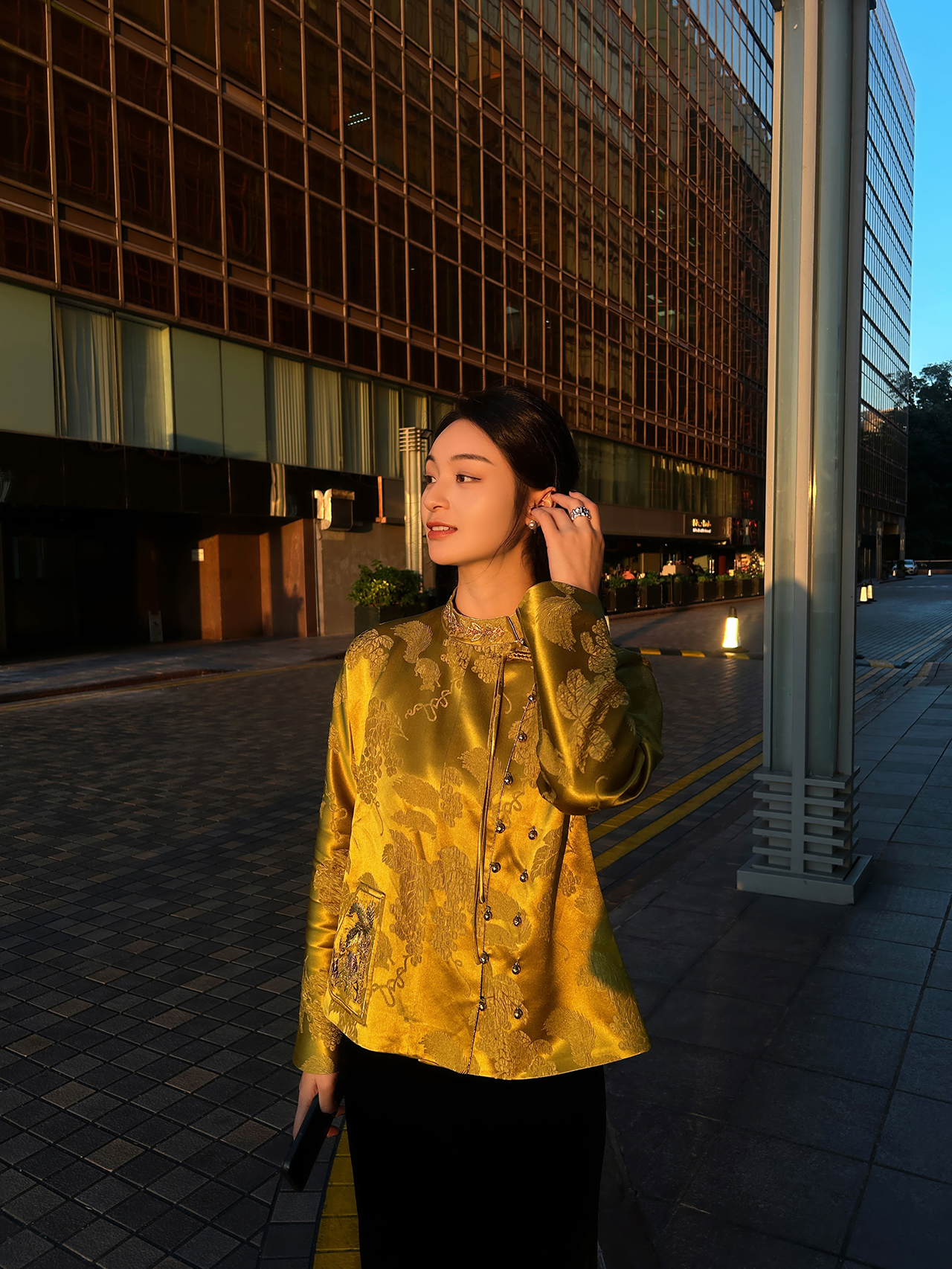 东方境X郭培| 芥末黄刺绣提花新中式上衣