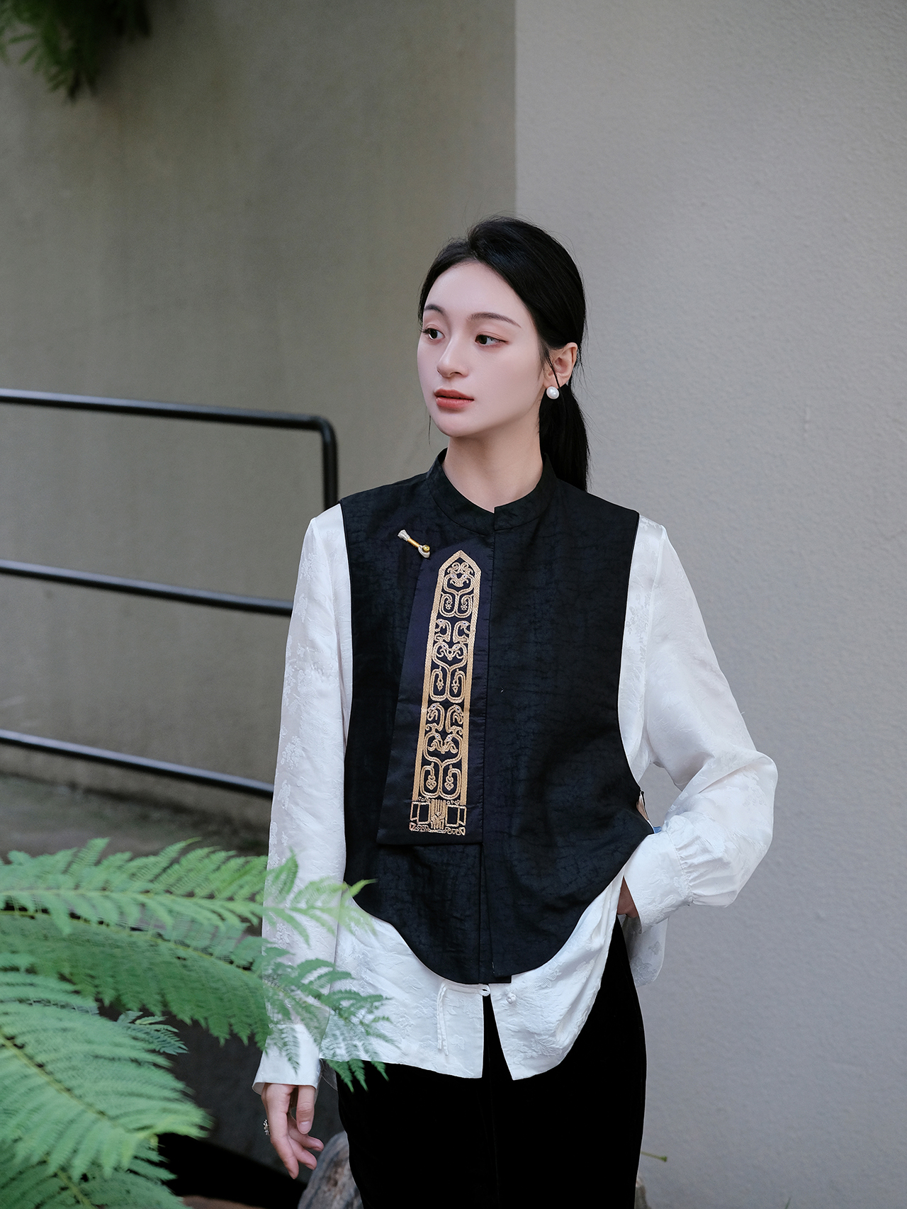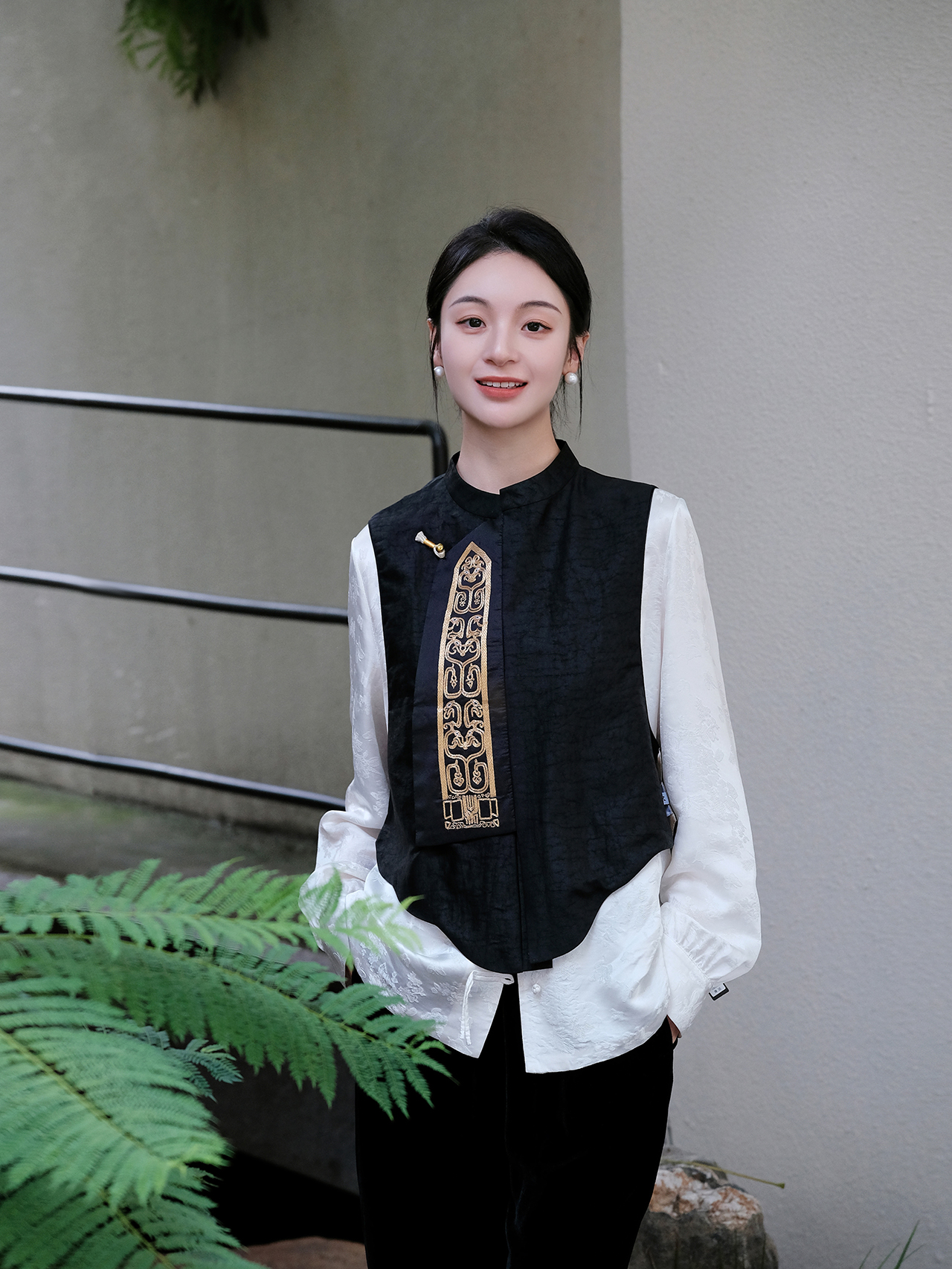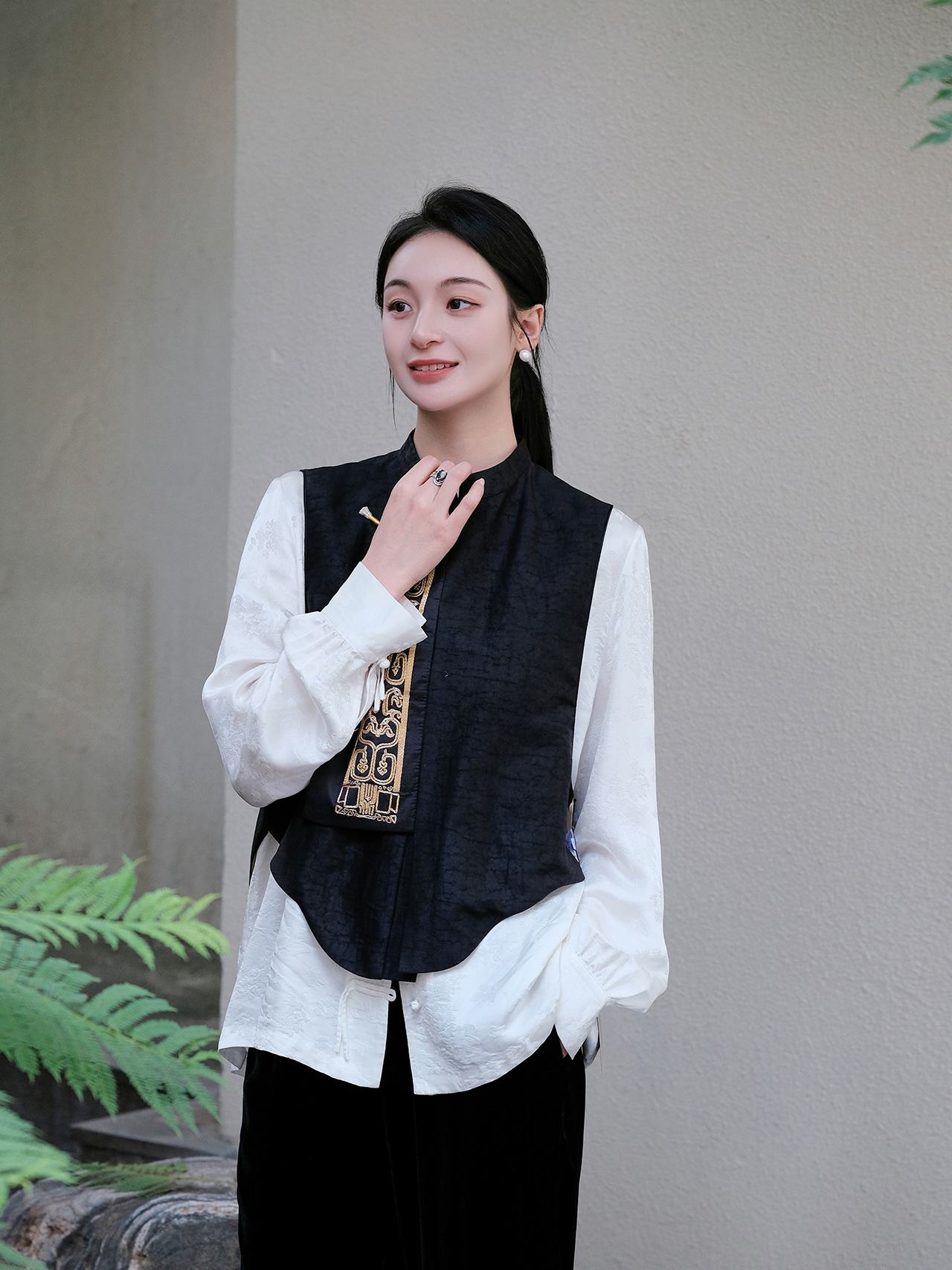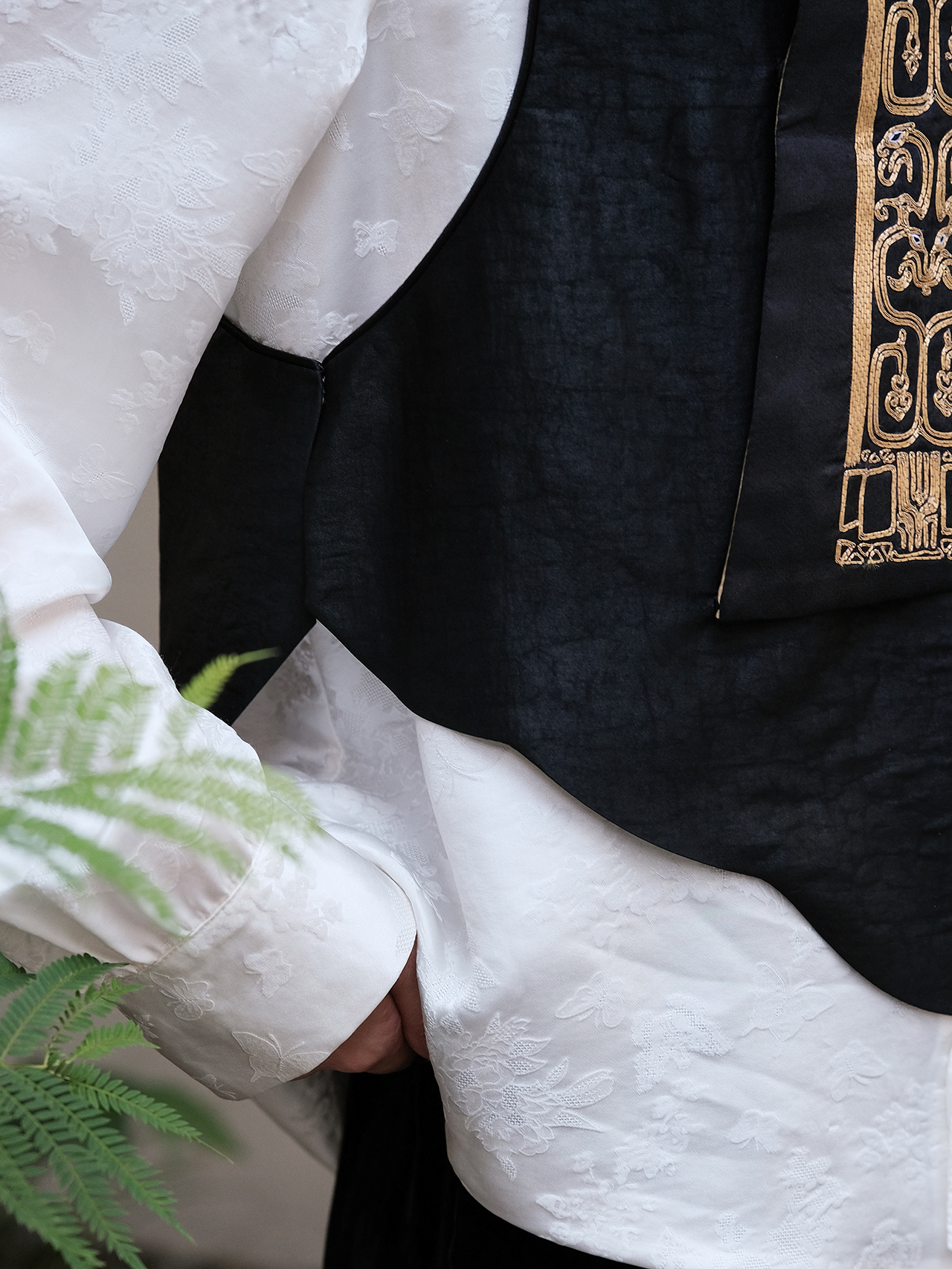 盛唐牡丹 |黑色真丝绡如意湖亭马甲
