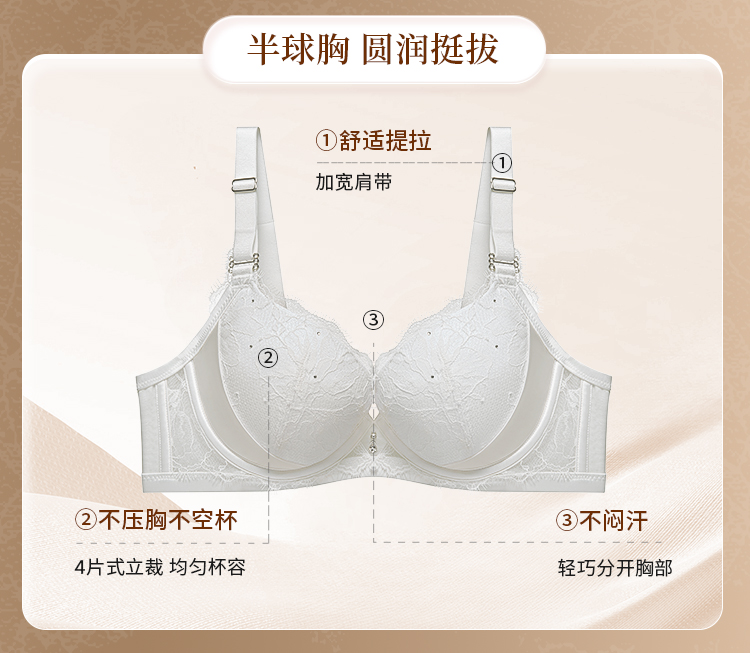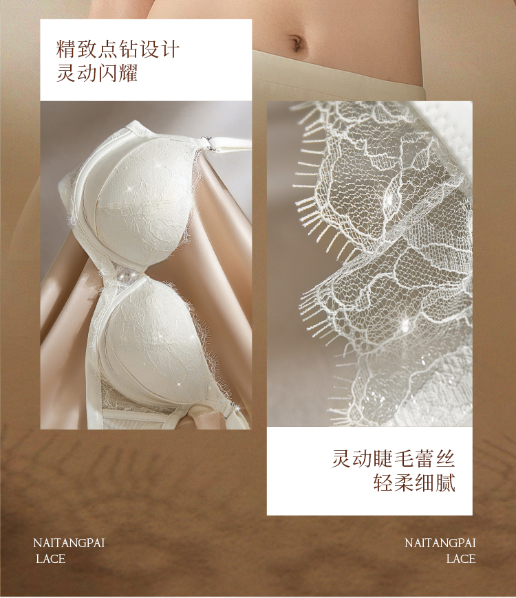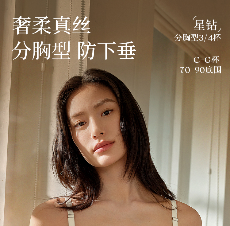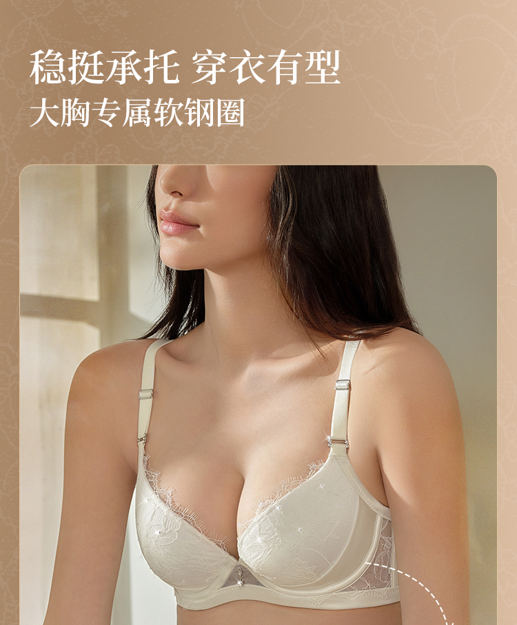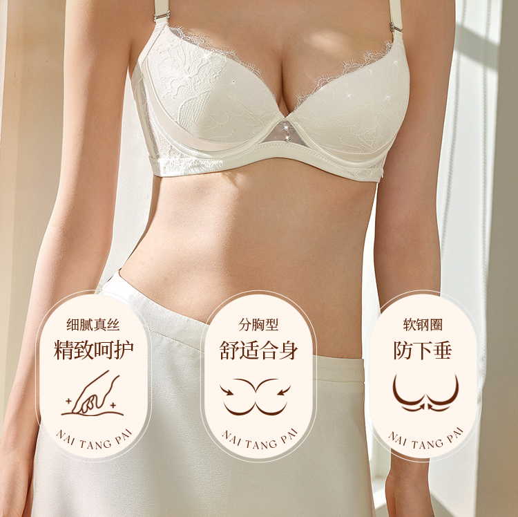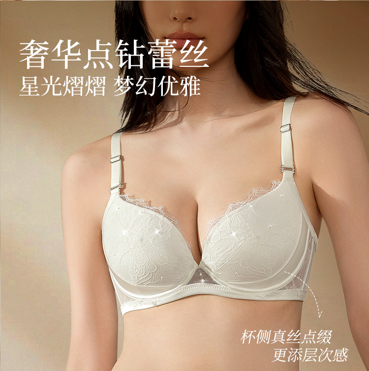 奶糖派星钻分胸型真丝文胸防下垂优雅轻奢大胸挺拔提拉调整胸型
