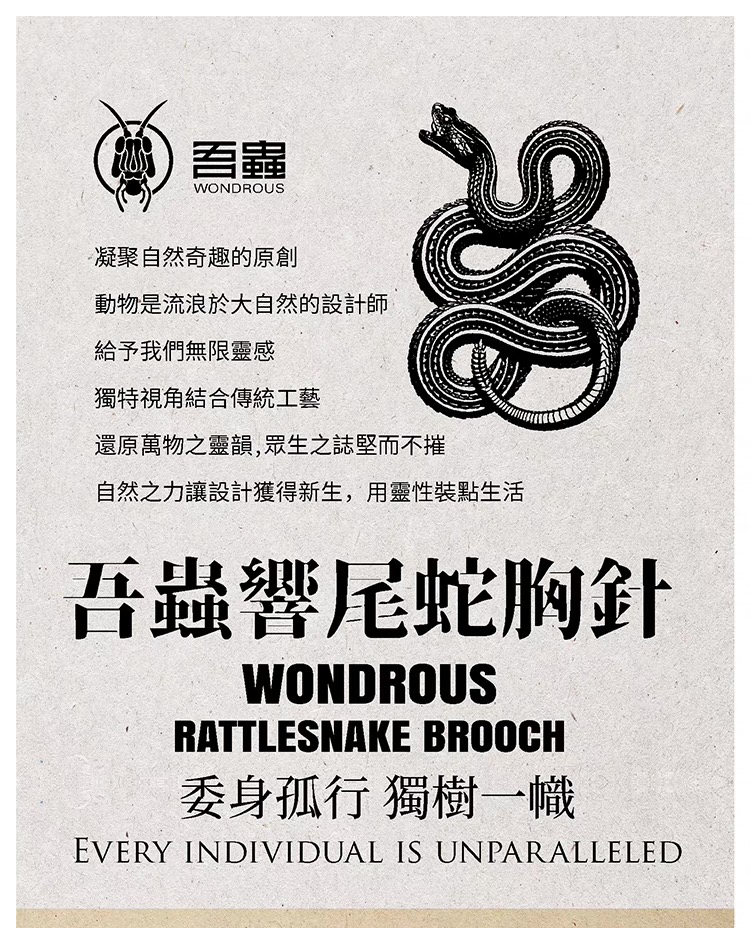 吾蟲-响尾蛇胸针新款 黄铜配饰 蛇配件 个性礼品配饰【官方授权 48小时发货】
