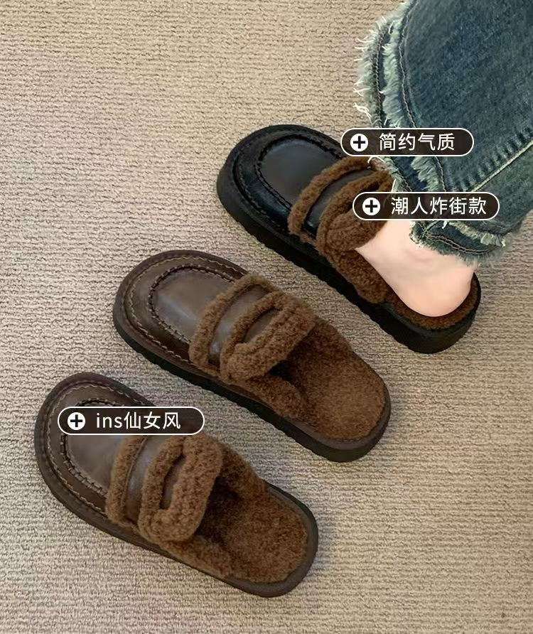 【暖呼呼❗️毛毛半拖鞋】走路出街既时尚又舒适,鞋面纹路细腻,舒适稳固后跟设计,防滑橡胶大底,2025新款秋冬厚底增高勃肯鞋女QQ