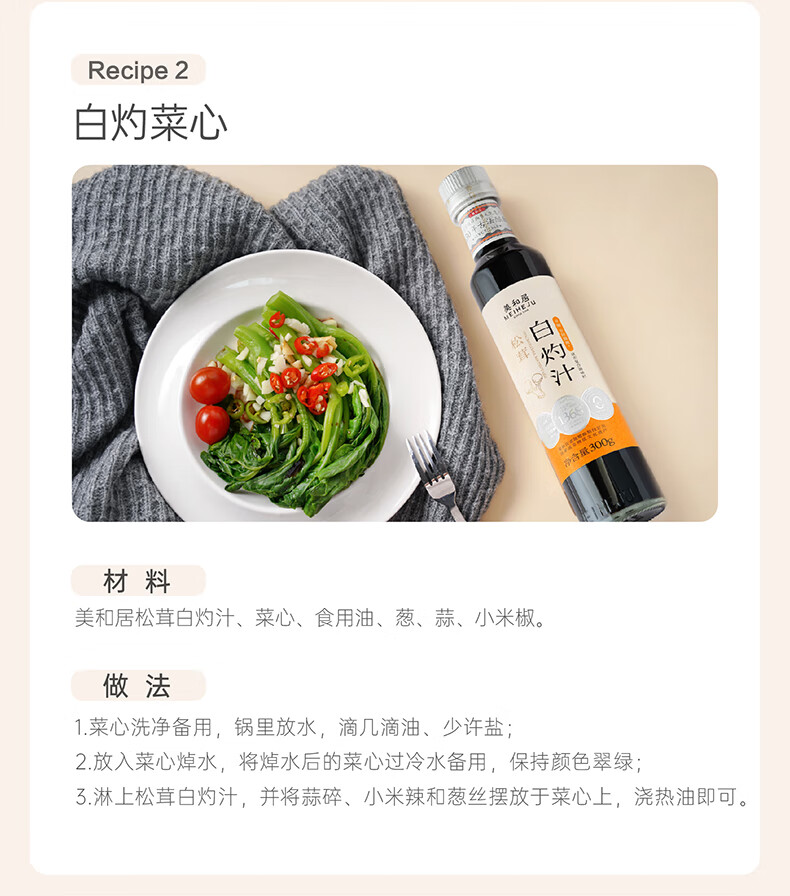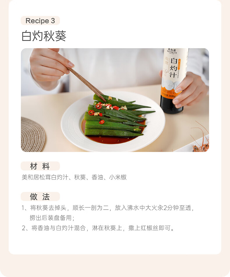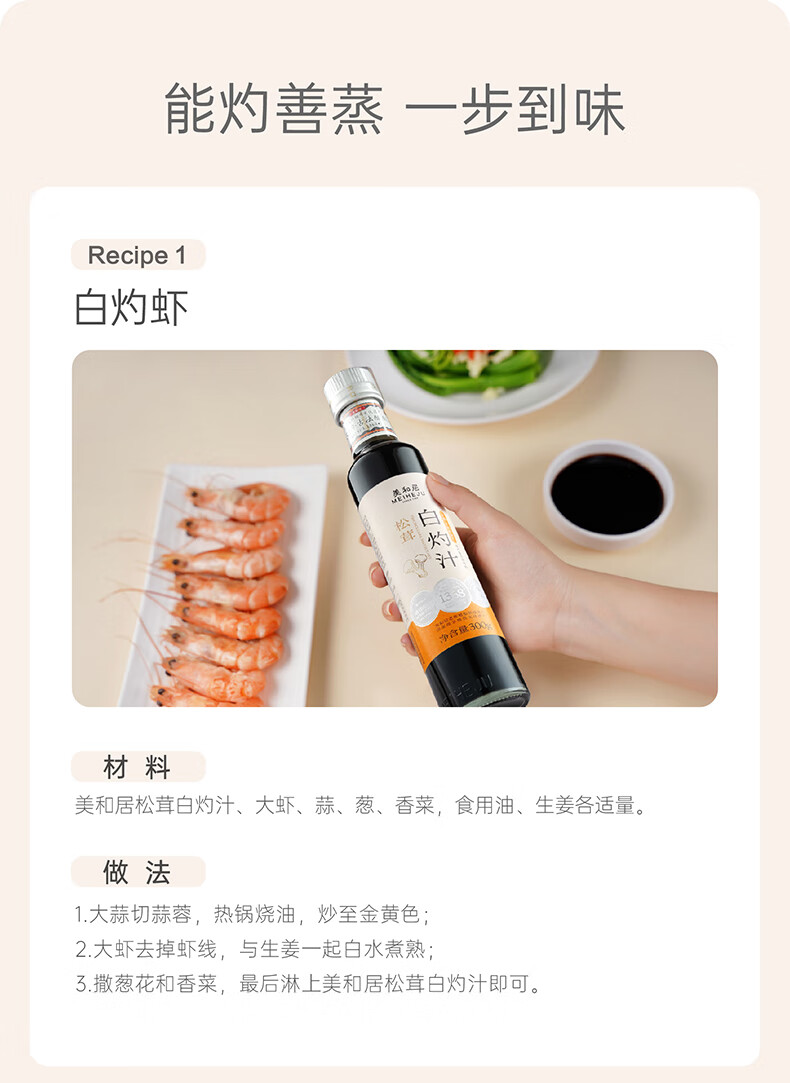 【美和居—0添加】松茸白灼汁清蒸鱼葱油白灼大虾菜心家用海鲜汁