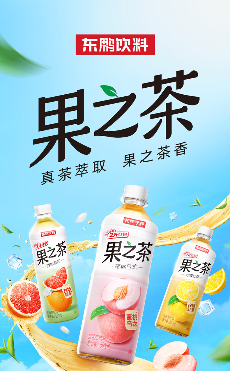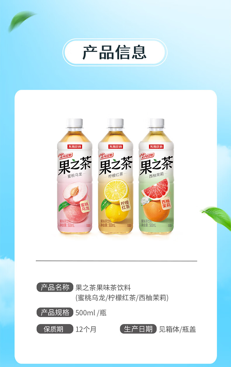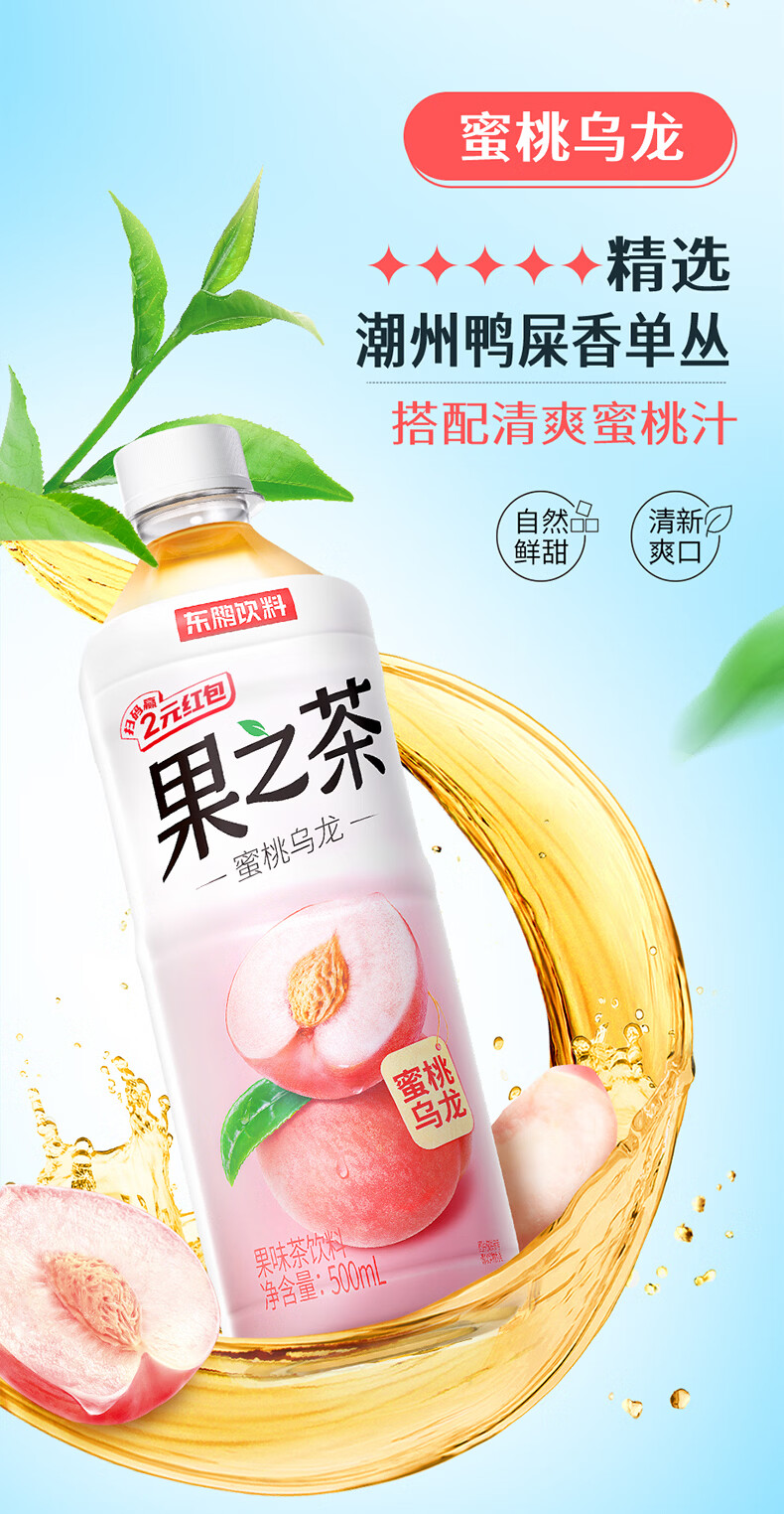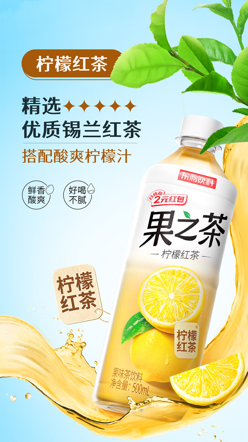 东鹏特饮果之茶果味茶饮料500ml柠檬红茶蜜桃乌龙西柚茉莉多口味
