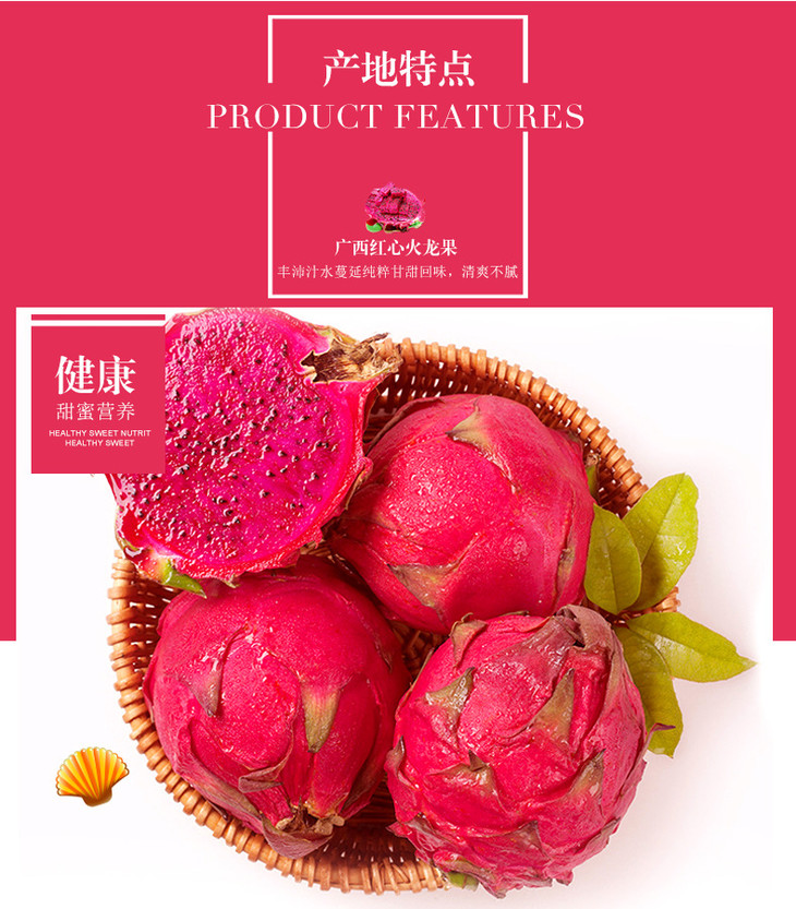 【食品酒水】薄皮红心火龙果 5斤热带广西海南京金都一号红肉水果