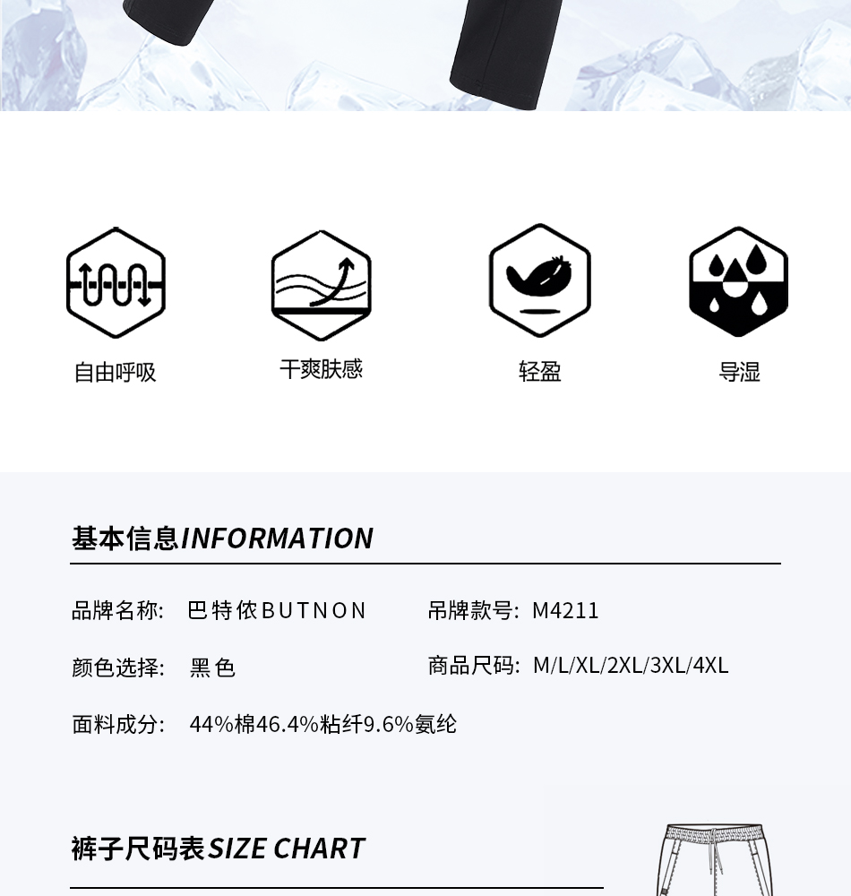 巴特侬针织运动裤男士夏季新品4211