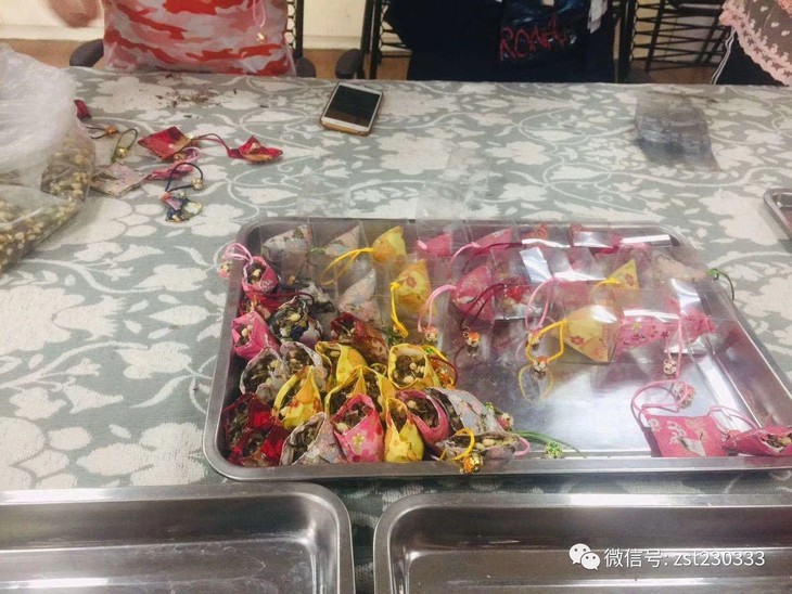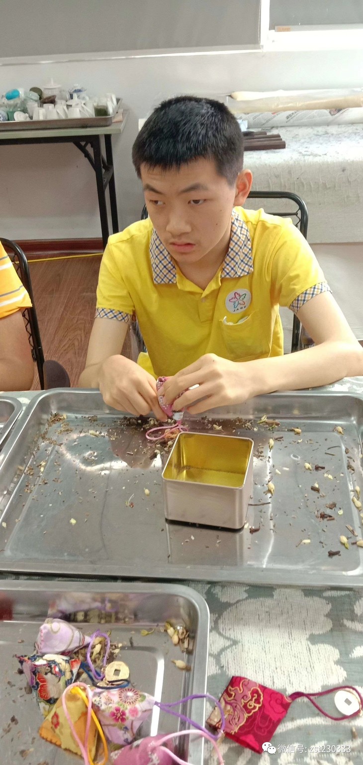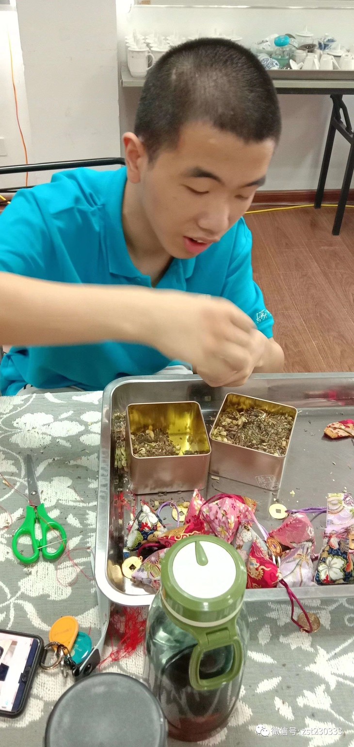 本次公益活动纯手工制作香囊全由残疾人少年组自己完成。