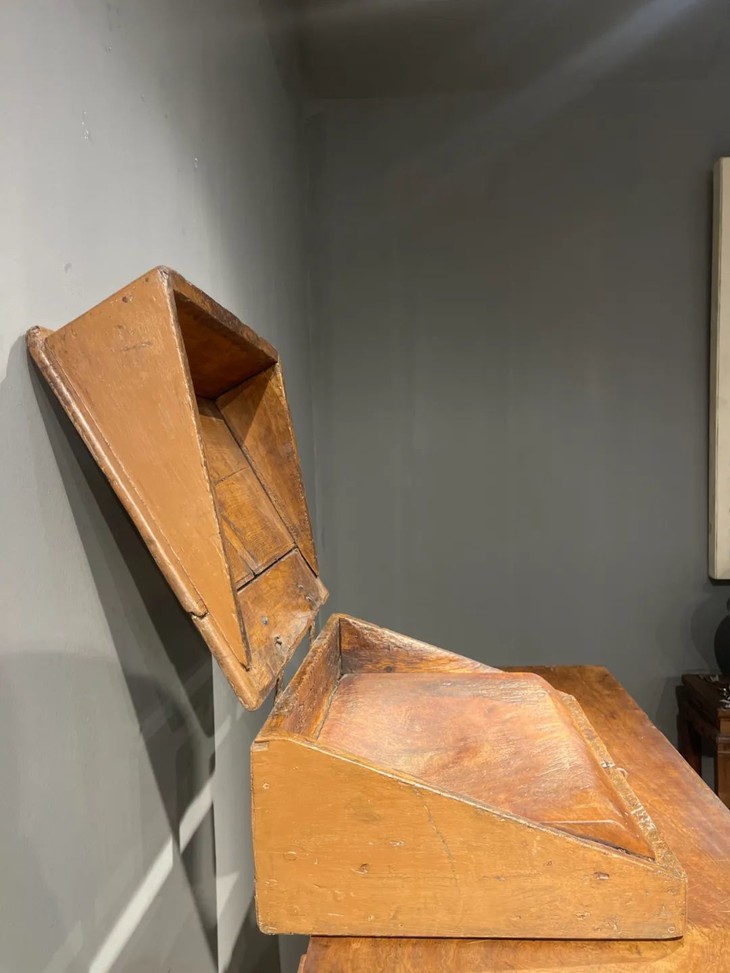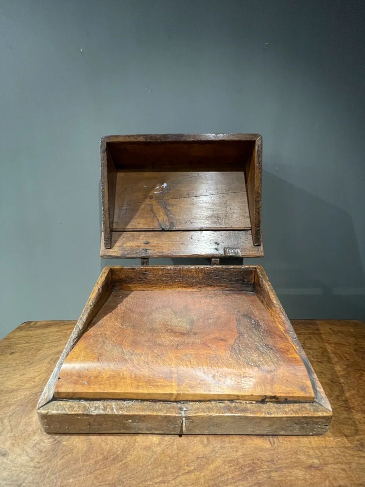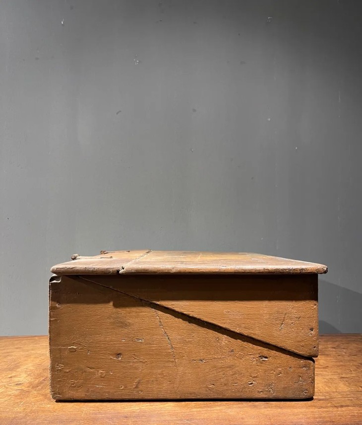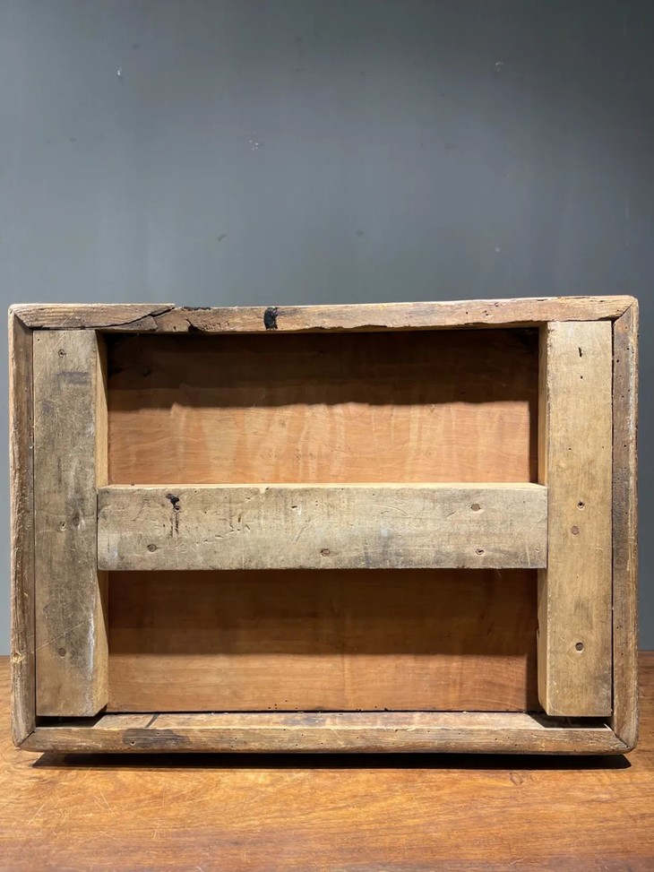 这是一件来自法国十九世纪的老肉铺砧板及原搭配的可携带木箱,一块厚片硬木砧板,中央因多年剁切使用而型成自然的凹槽,搭配当年量身定做的携带用木箱,整体搭配实用美观,历经逾百年的粗旷使用仍然稳当耐用,再使用百年肯定没问题,真正体现“用之美”越用越美的哲理。此法国十九世纪可携式肉铺砧板及木箱,设计奇巧,制作严谨,造型极简,坚固耐用,使用痕迹凸显此老器物的魅力,刀痕满布的老硬木砧板,质地坚硬比重高,包浆皮壳温润柔美,携带木箱设计简约耐用,整体风格极简隽永,实用器具却如此讲究,令人耳目一新。此可携式肉铺砧板及木箱,如图所示,硬木砧板中央因多年剁切使用而型成自然的凹槽,携带木箱除侧面与后方有裂缝、边沿细微磕碰以及表面细微磨痕外,基本保存完好无损,表面包浆皮壳温润细腻。不含摆设示意的拍摄刀具。尺寸:整体木箱,长:50.2厘米,宽:37厘米,高:18.5厘米,内部砧板,长:46厘米,宽:32厘米,重量:11.35公斤。