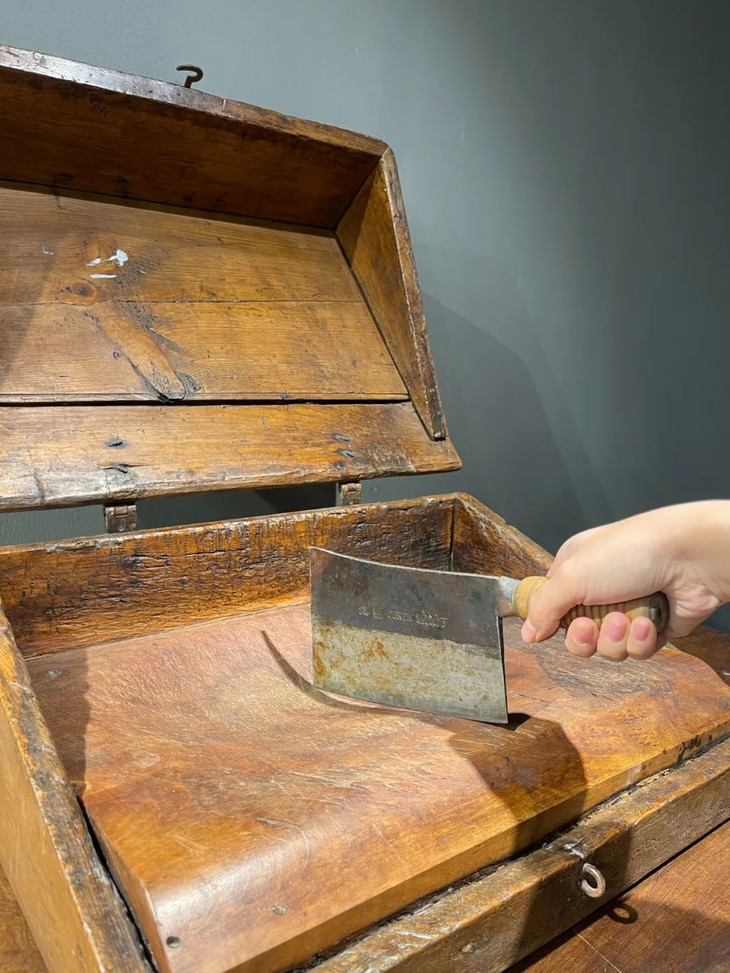十九世纪法国可携式肉铺砧板及木箱,顺丰包邮