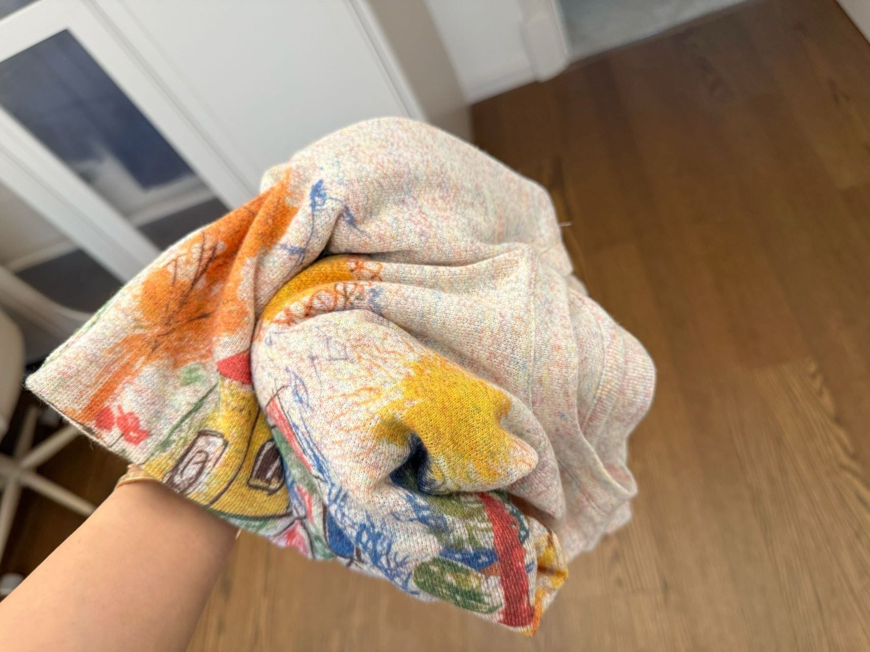 涂鸦五彩家园真的太好看了,五颜六色做旧色彩复古,有活力,随身版型,薄厚度适中,万能百搭!