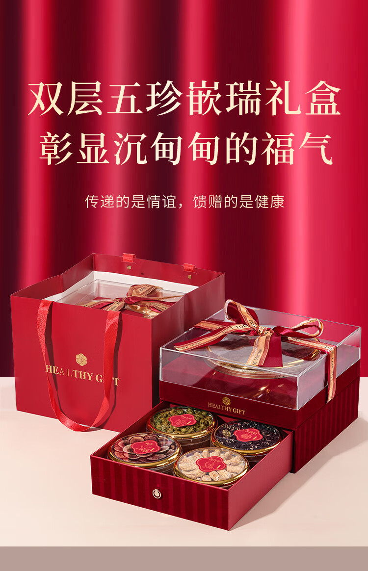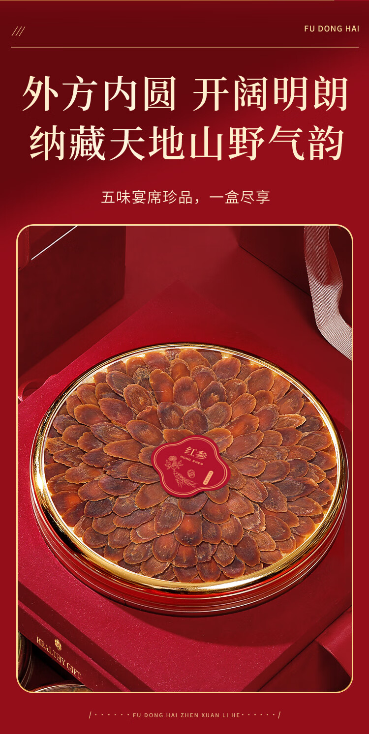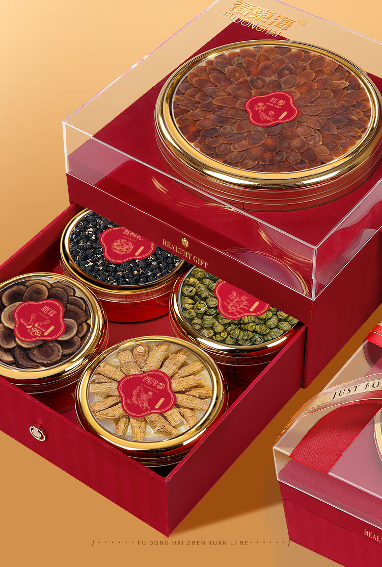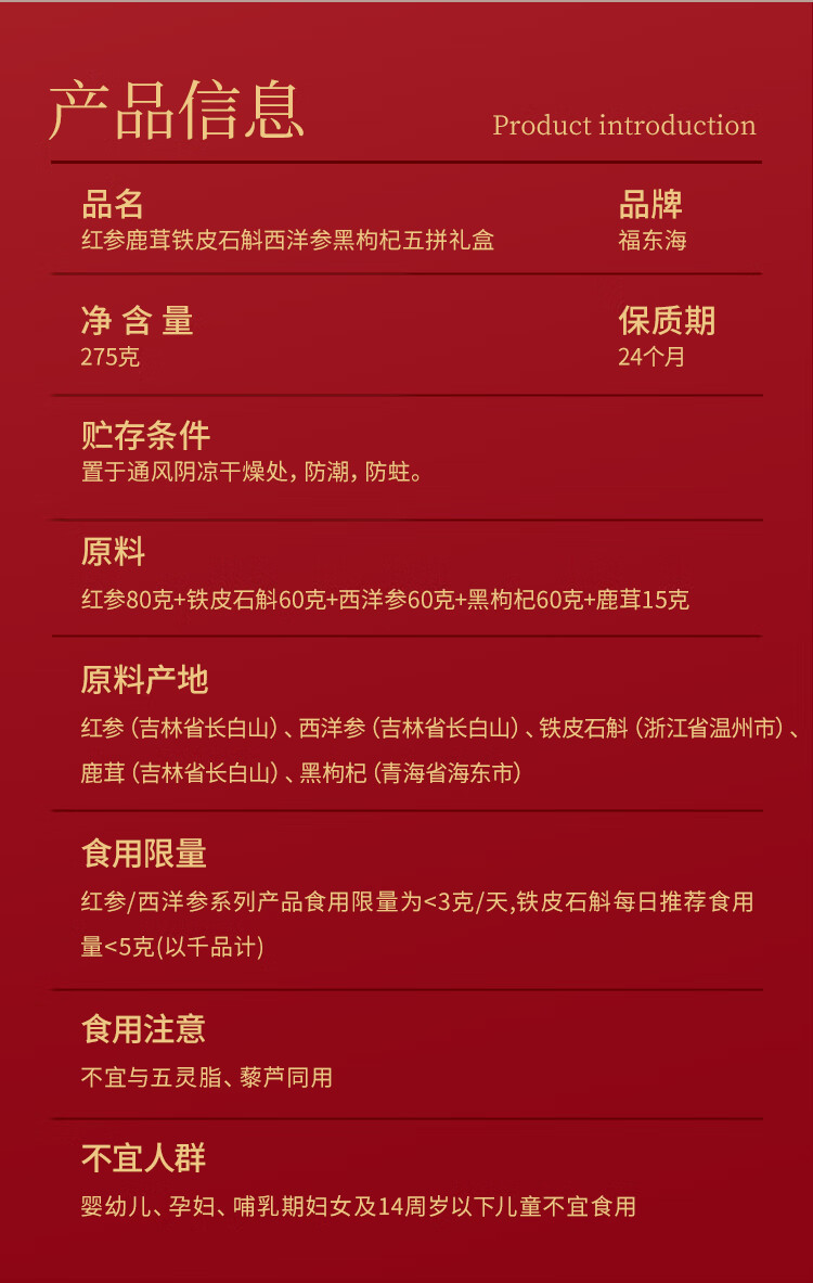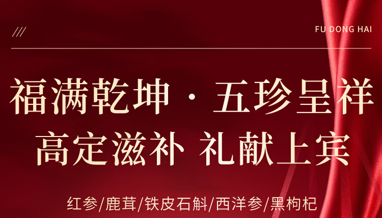 福东海红参鹿茸铁皮石斛西洋参黑枸杞五拼礼盒275克送长辈父母
