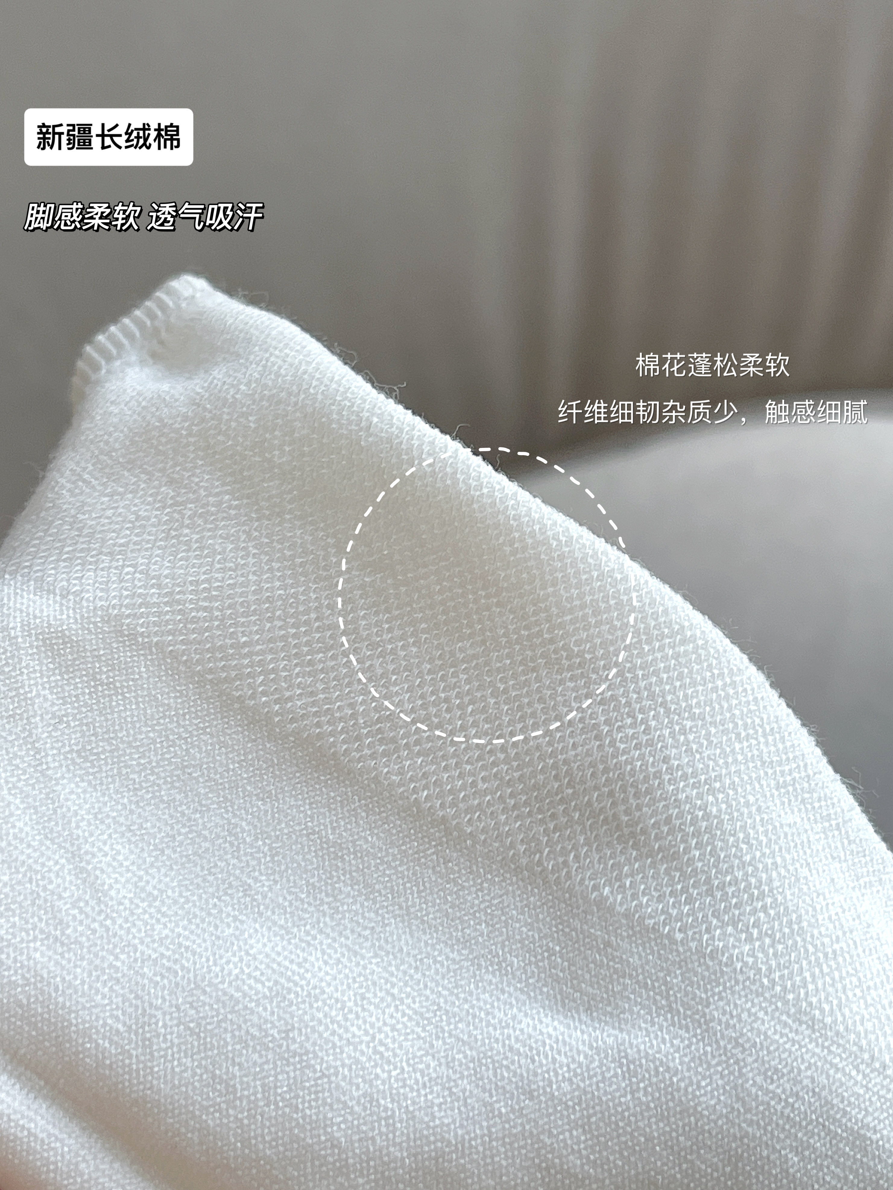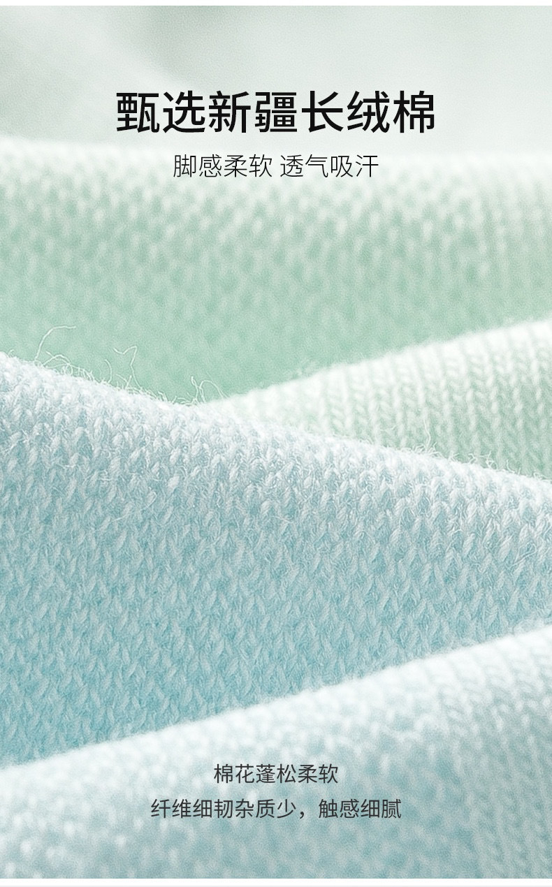 采用新疆高级精梳棉,更柔软更透气,脚感更舒适!
