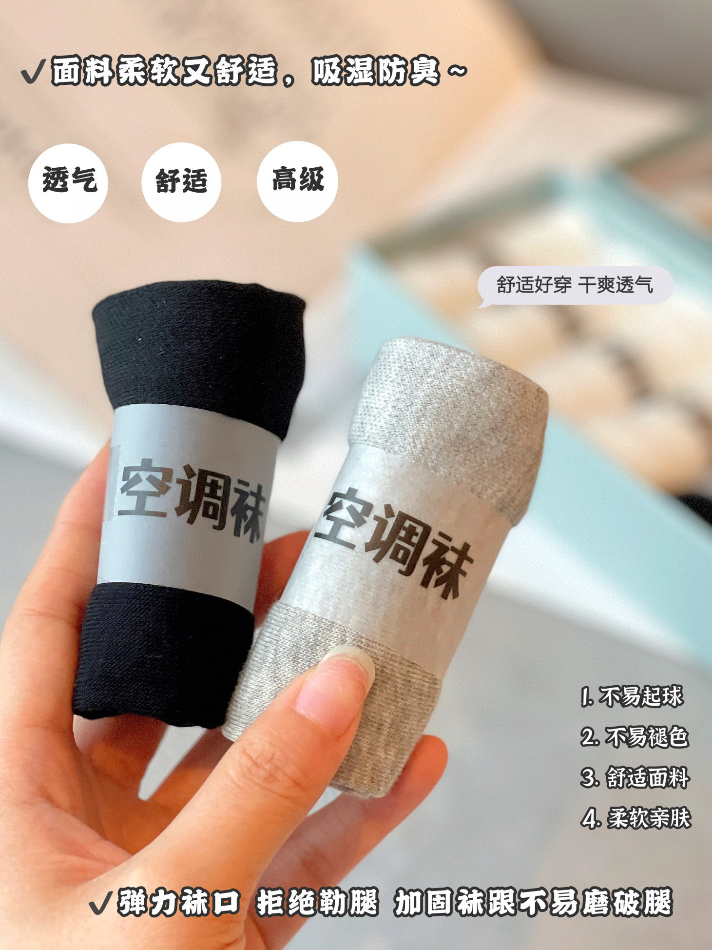 添加了强力橡筋,弹性更好!舒适不勒脚!