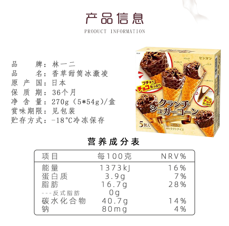 进口林一二甜玉米脆冰淇淋5个/盒268g雪糕冰糕批发