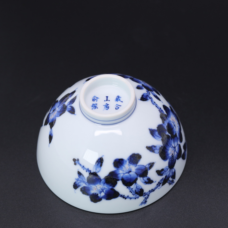 寒香慕古釉里红双勾莲压手杯(下单前请先咨询客服)