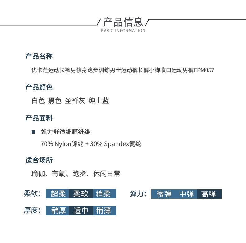 YOKALAND/优卡莲EPM057长裤修身跑步训练男士运动长裤小脚收口