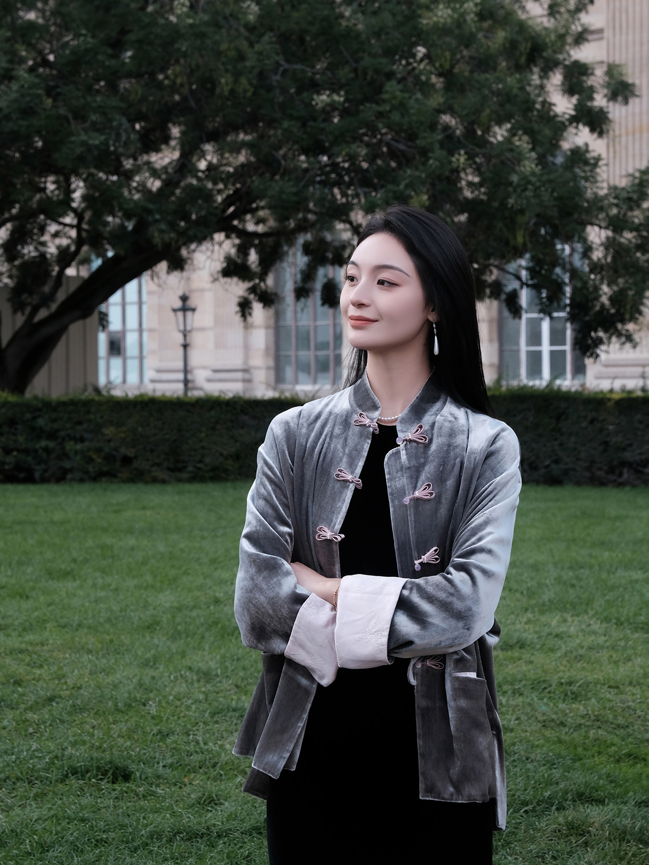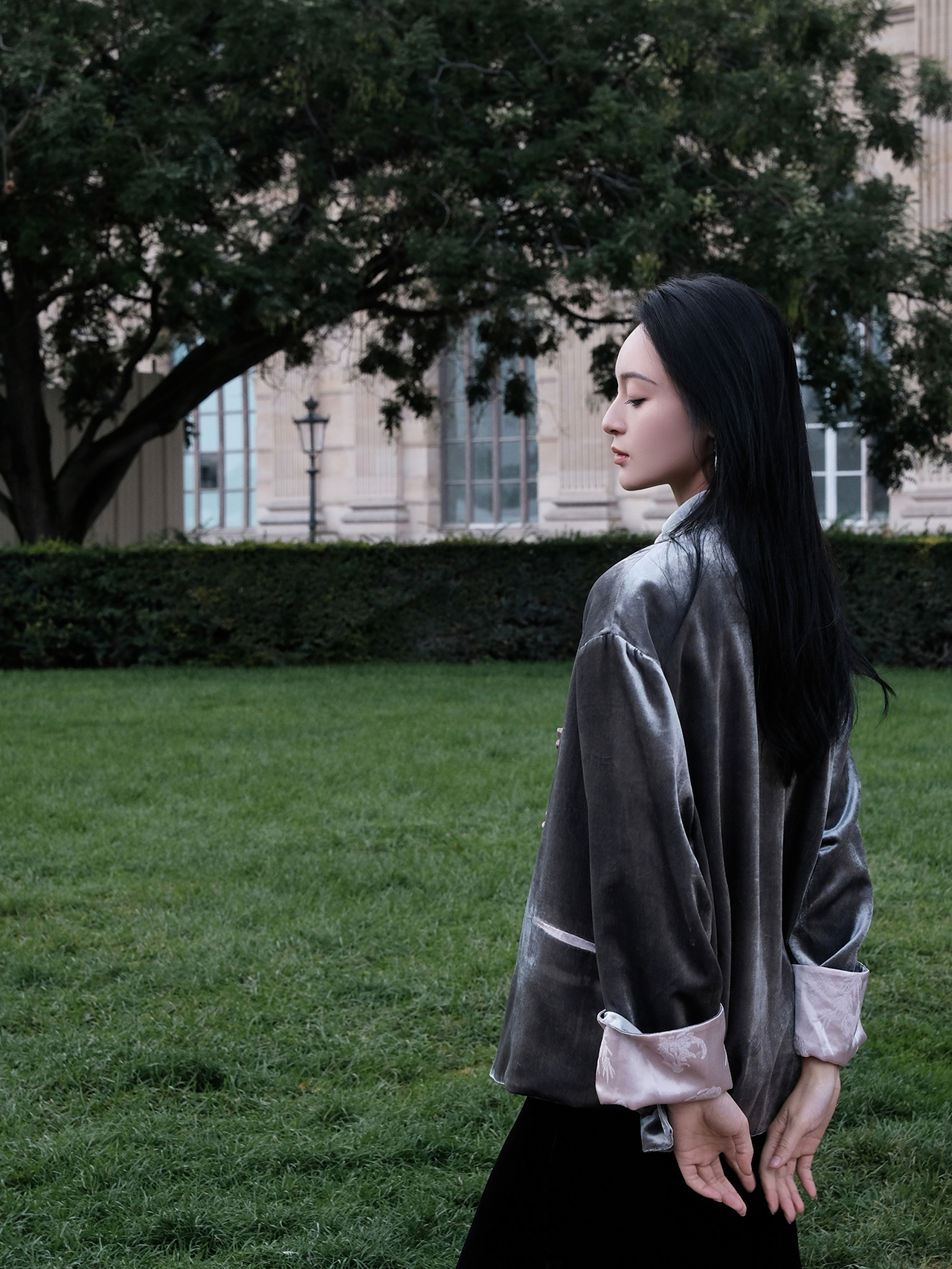 盛唐牡丹|银灰丝绒配冠乐绉双面穿外套