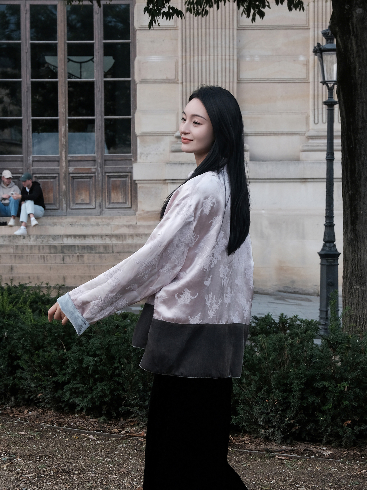 盛唐婧 |桃夭粉新中式国风提花上衣