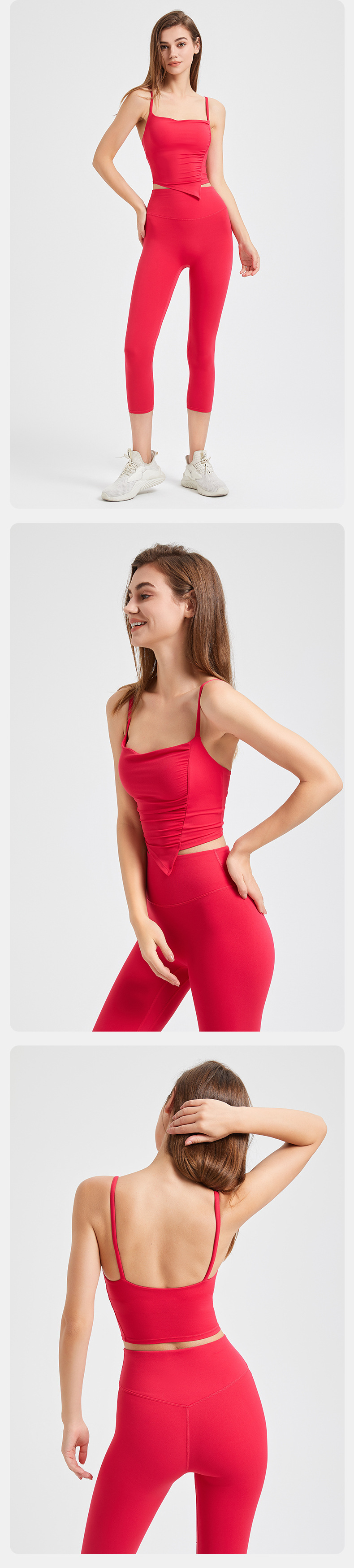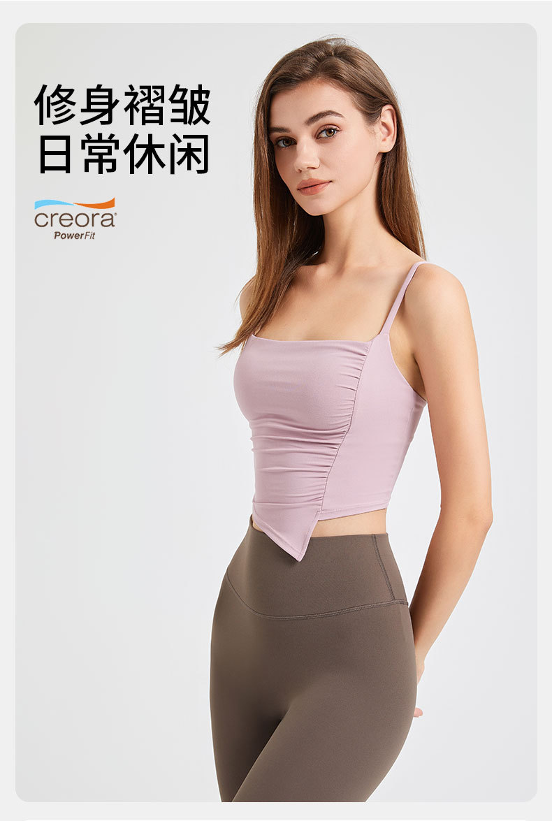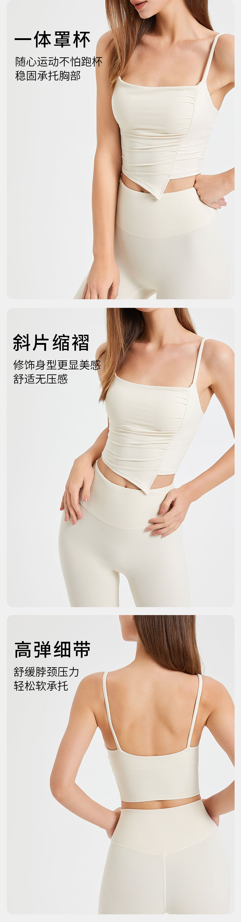 固定杯侧缩褶显瘦防震运动文胸女高弹吊带瑜伽服背心速干健身内衣FX 000 F2245