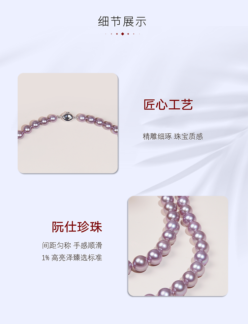 阮仕月下紫Pro系列 S925银淡水珍珠项链 8-10mm N8-10YXZ-PD