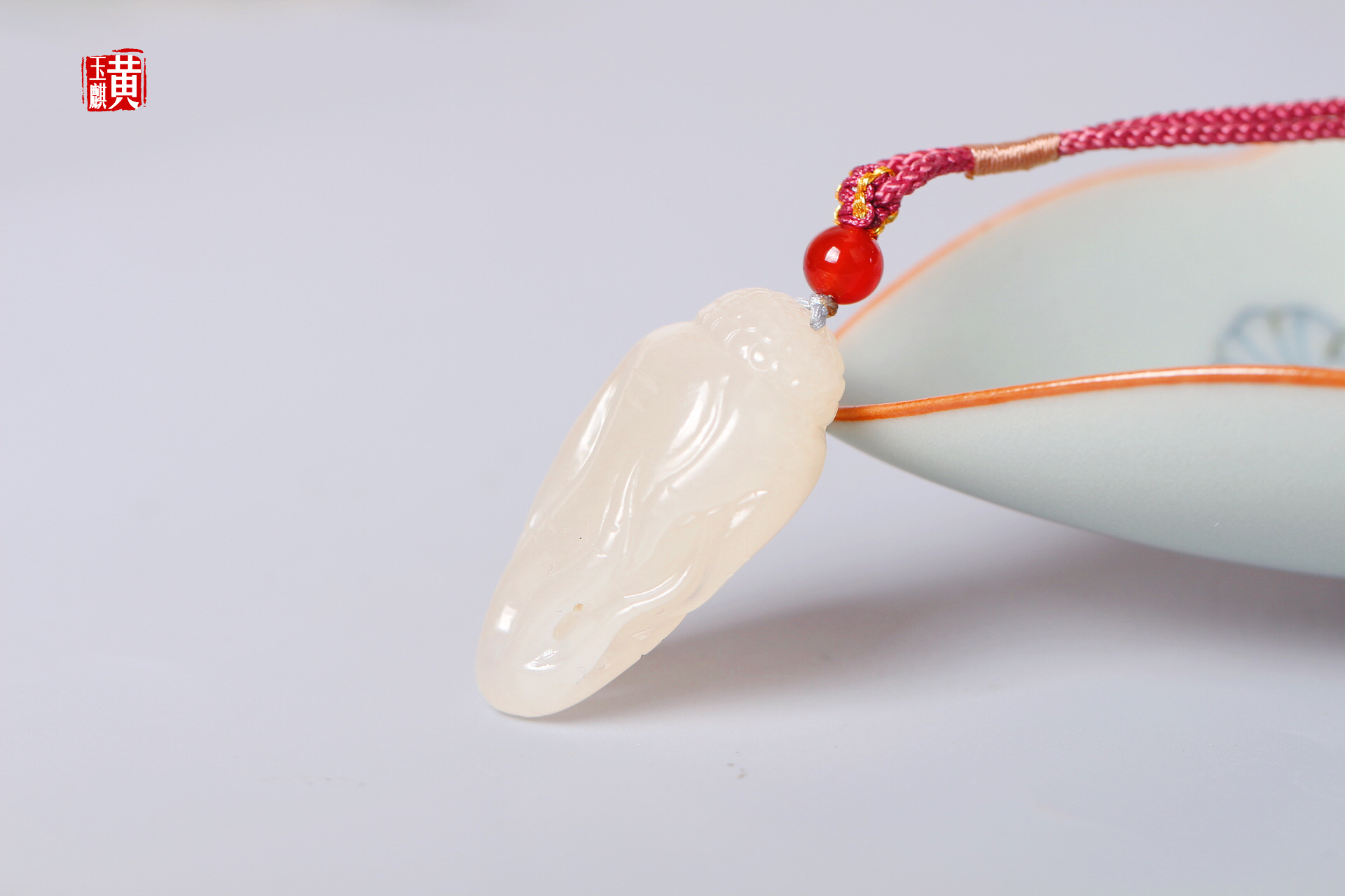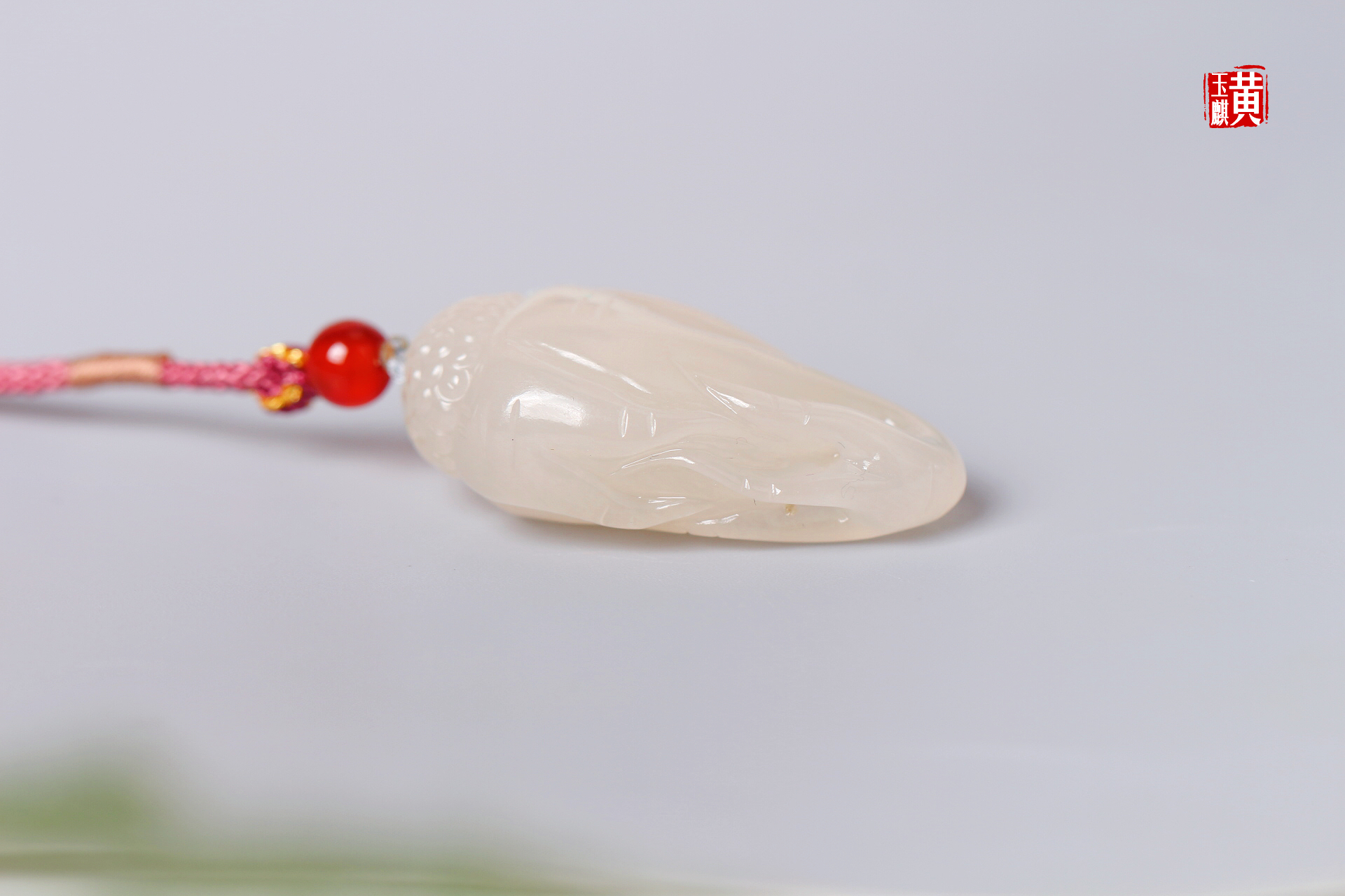 和田藕粉玉【人参】吊坠 配精美挂绳