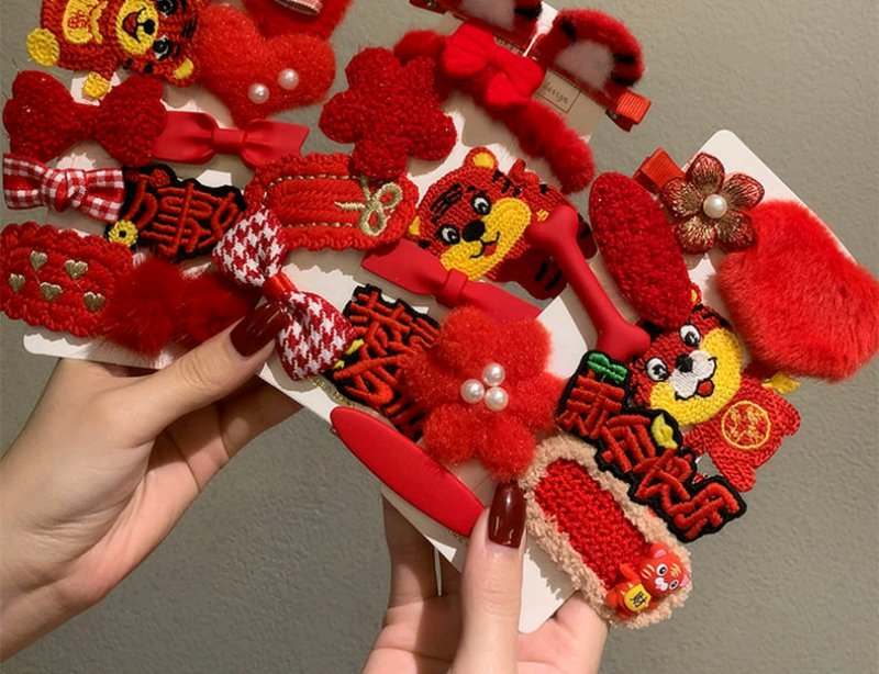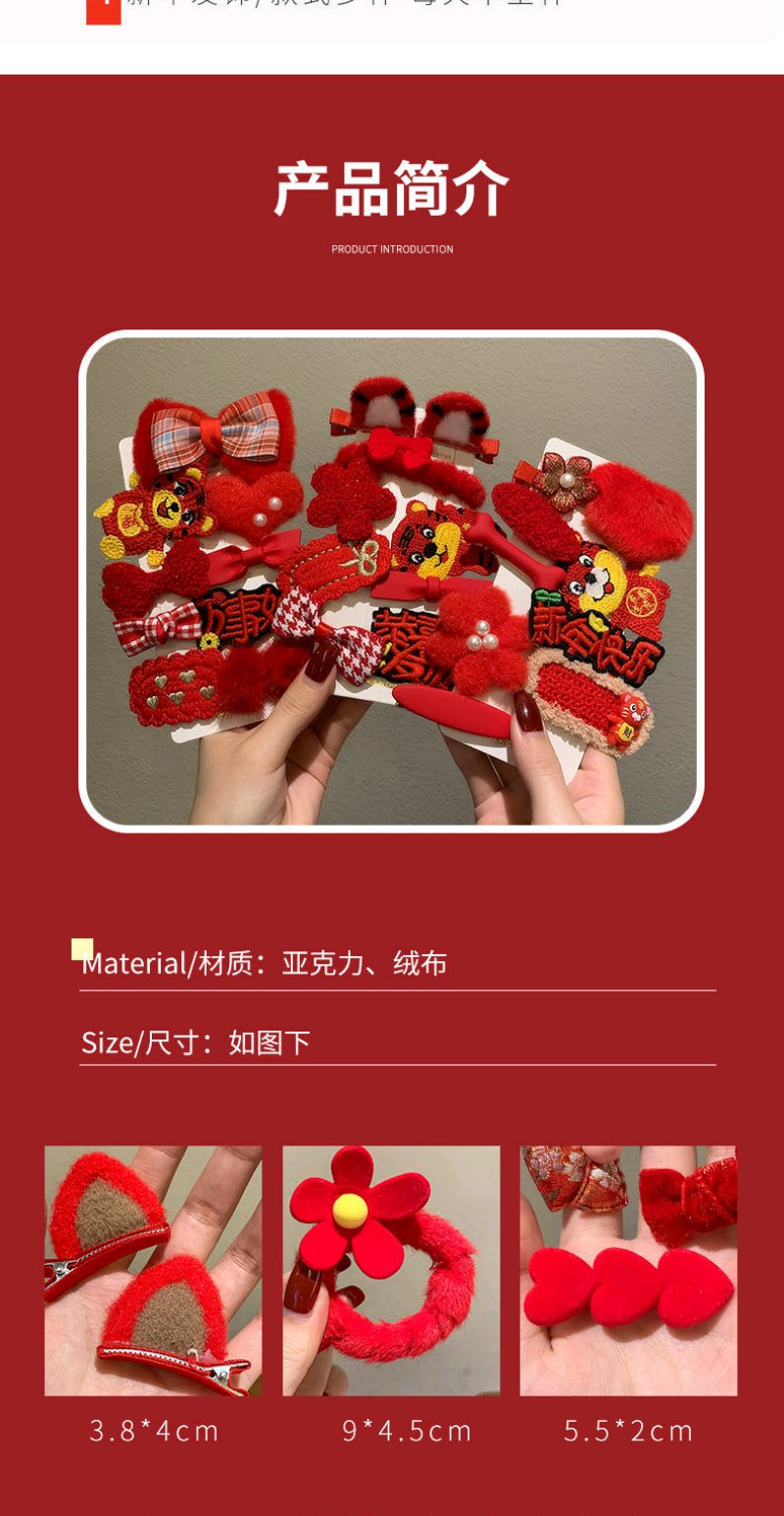 【9件套】鸿运当头虎年儿童发夹新年发饰女孩可爱喜庆过年夹子爱心猫耳对夹