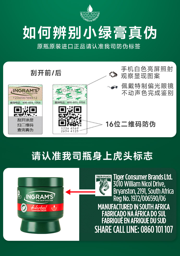 【年货节专属】INGRAM'S英格莱恩南非小绿膏原装进口草本香樟乳霜-D1
