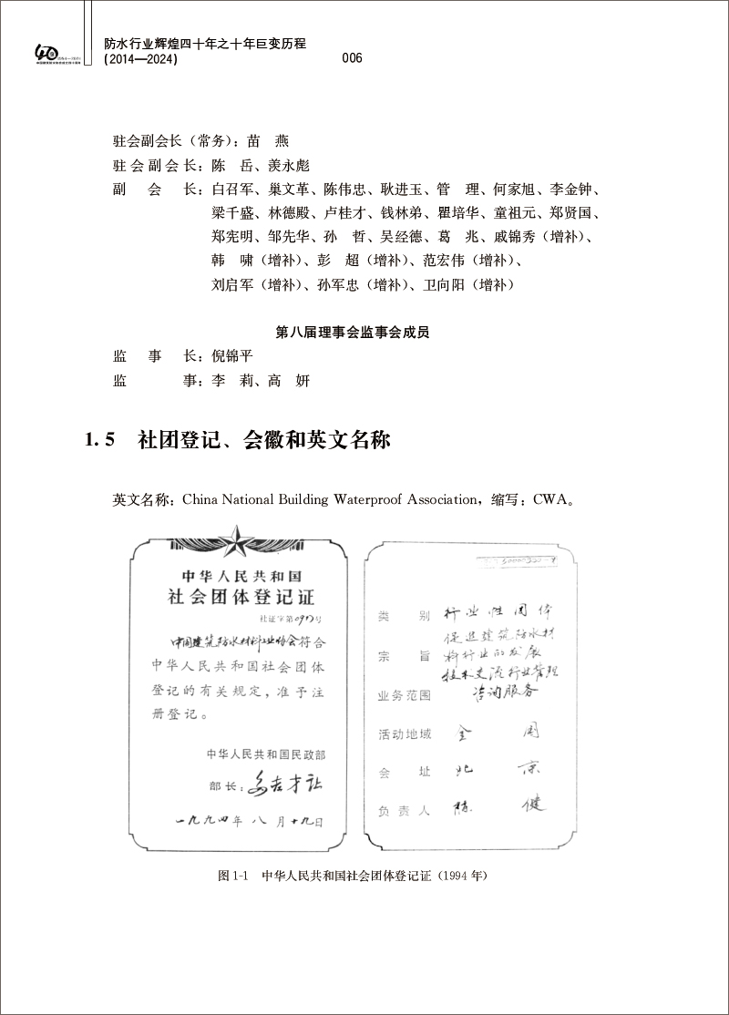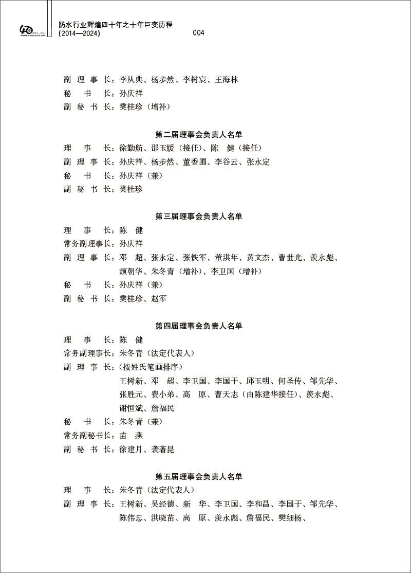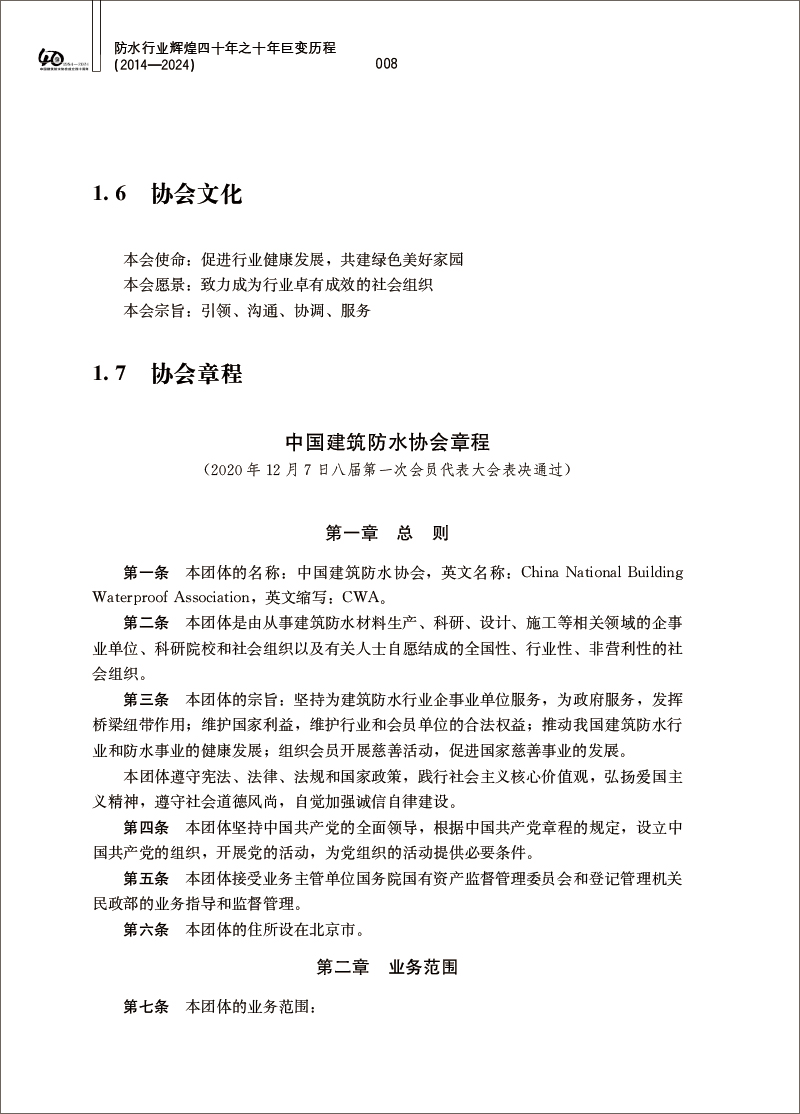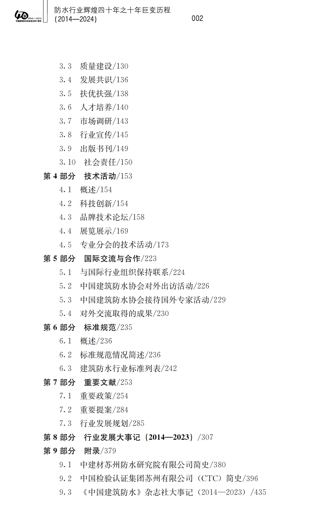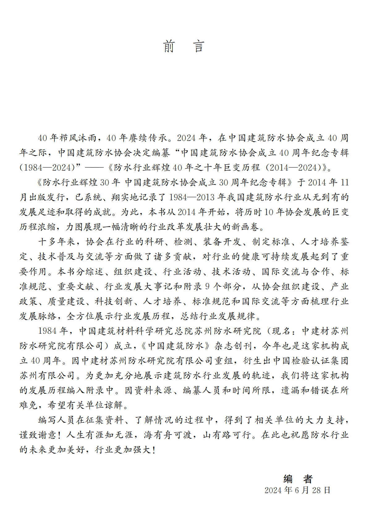 防水行业辉煌四十年之十年巨变历程:2014—2024 / 中国建筑防水协会编. 中国建设科技出版社有限责任公司,2024.11.ISBN 978716043158