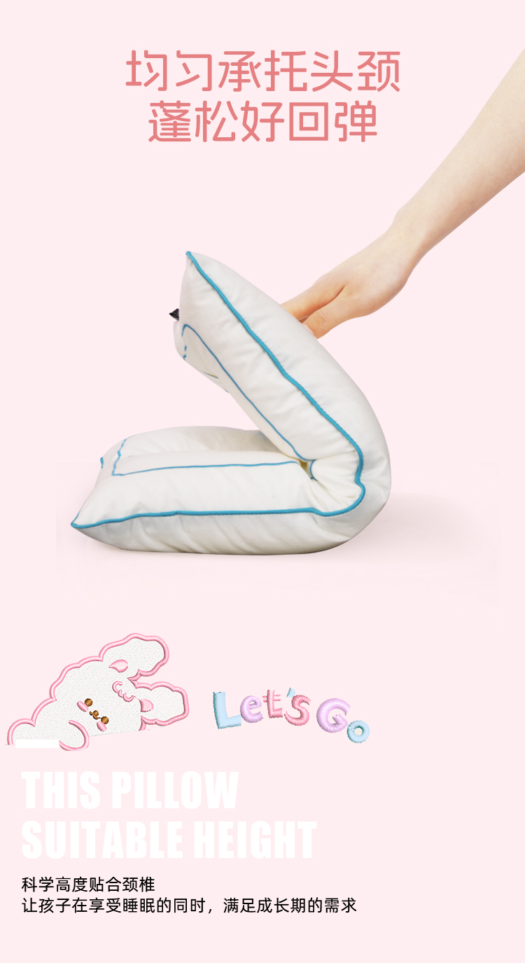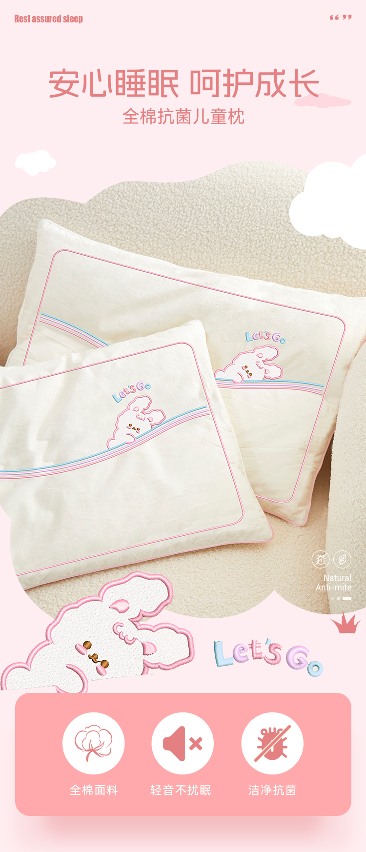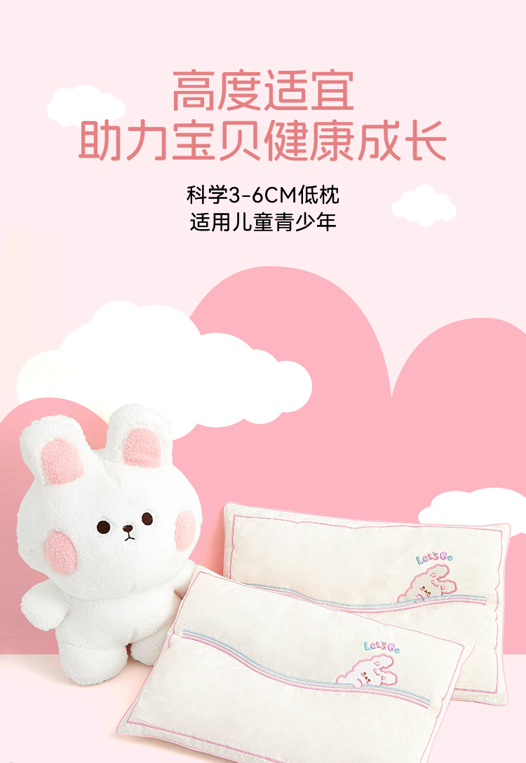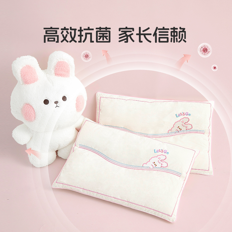 多喜爱 全棉抗菌儿童枕(安妮的兔/蛋壳龙)】饱满回弹 全位包裹 可水洗 更干净