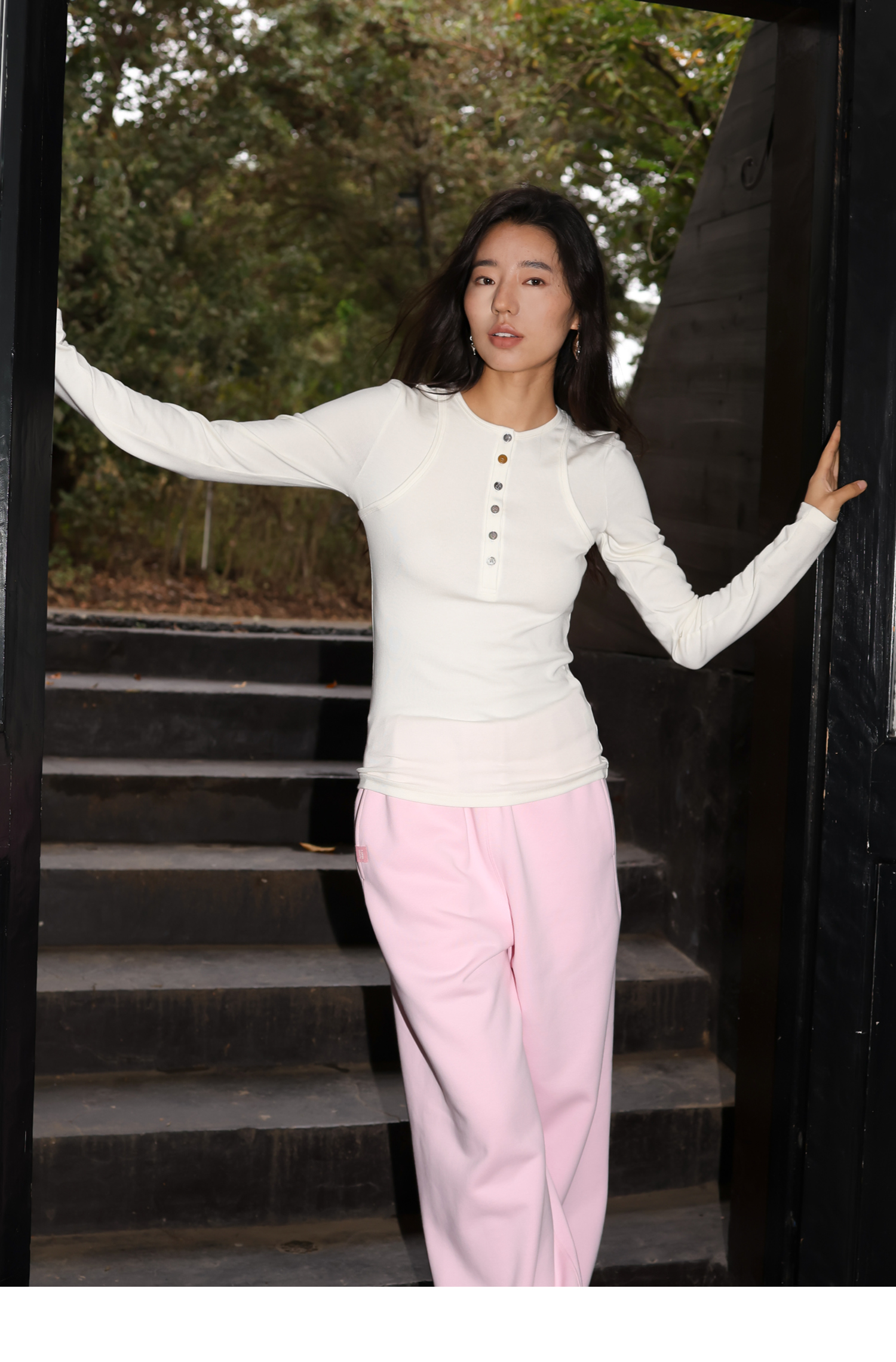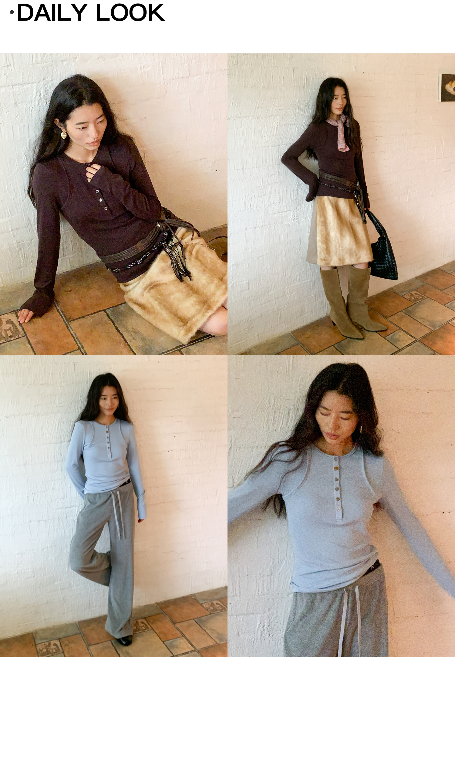 素舶 自发热纤维锁温保暖装饰背心假两件压线修身打底衫