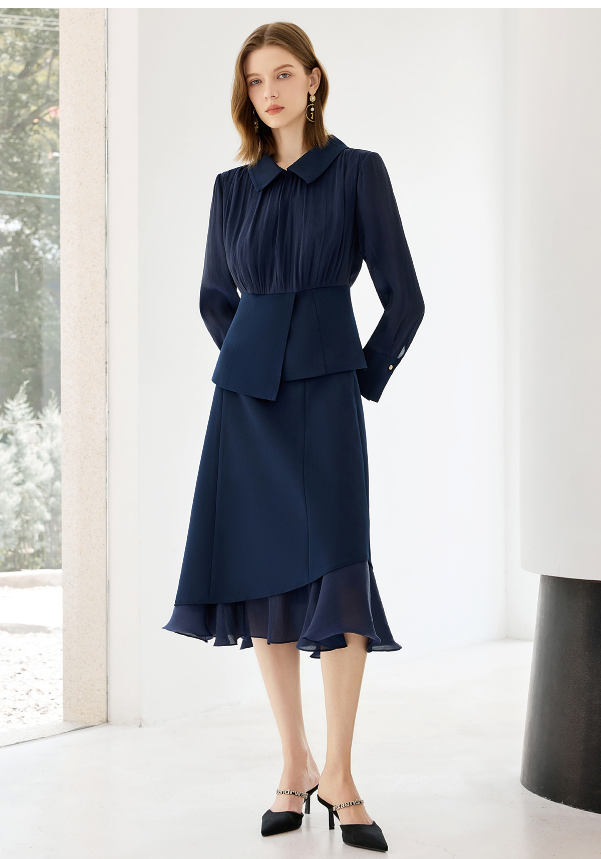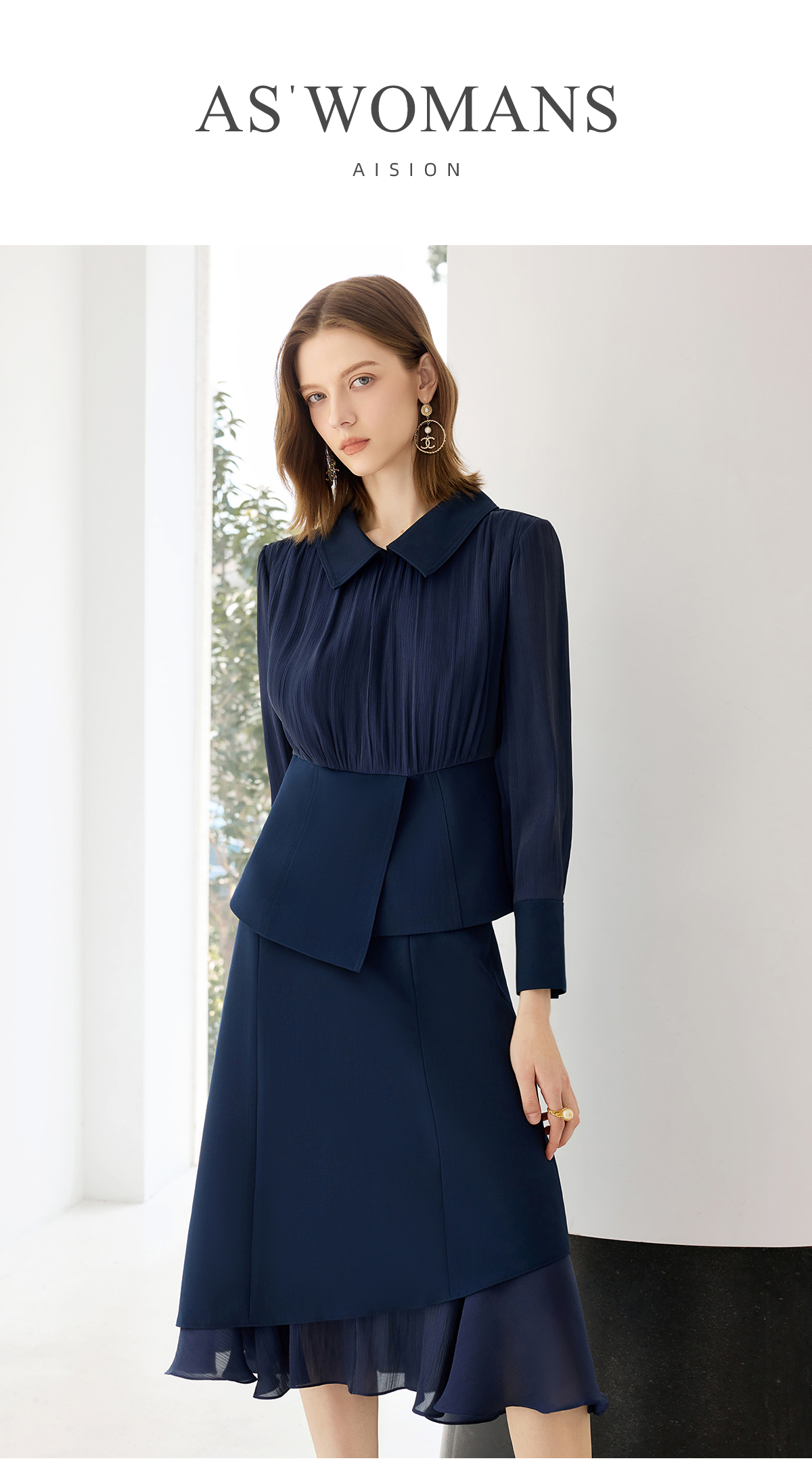 艾尚臣气质衬衫套裙女士法式长袖雪纺衬衣轻奢高级感穿搭时尚套装