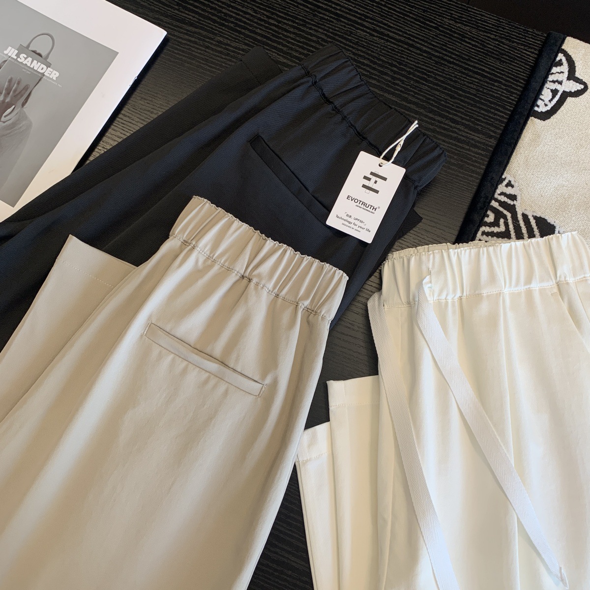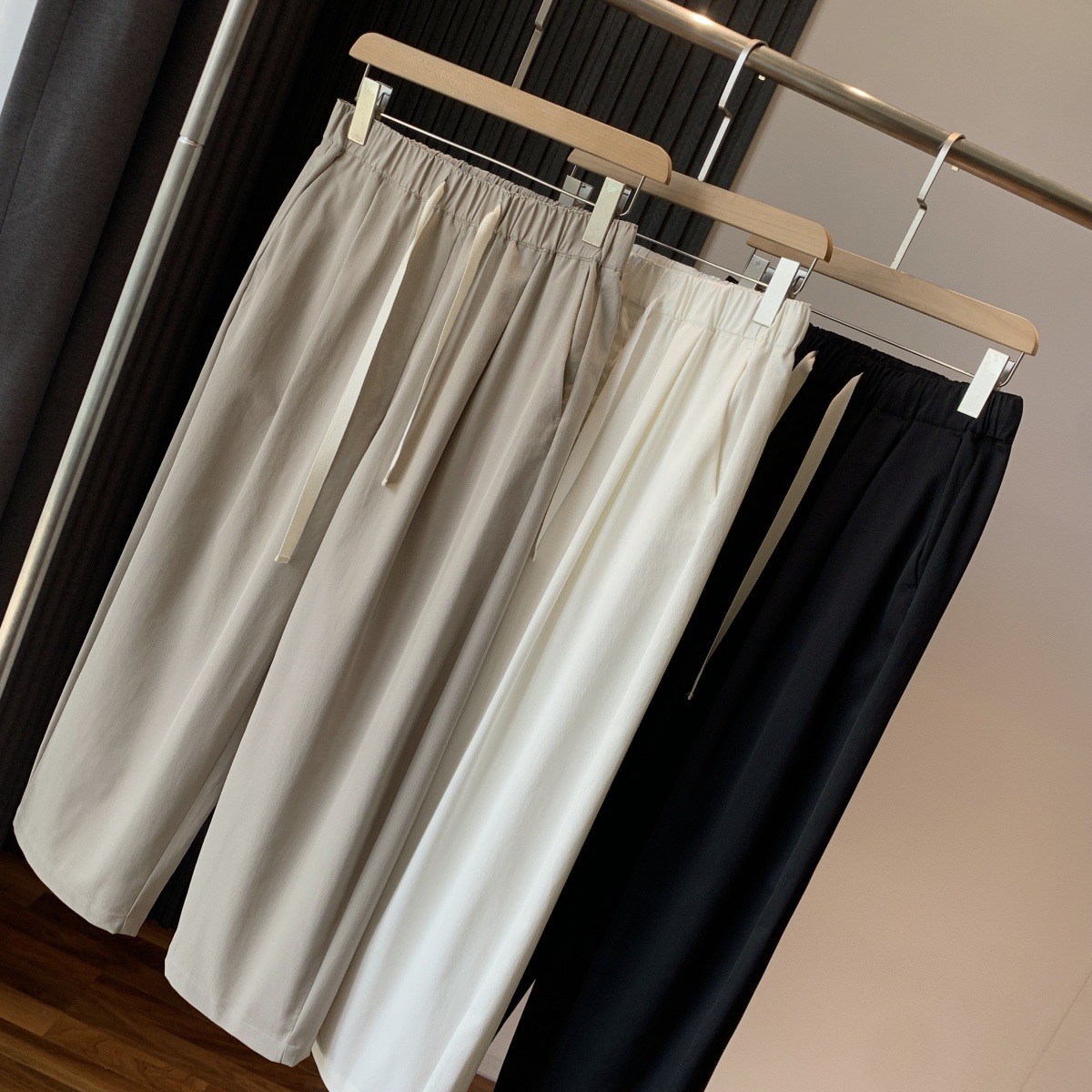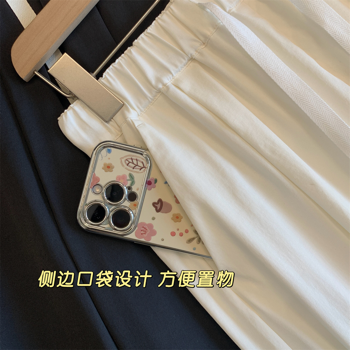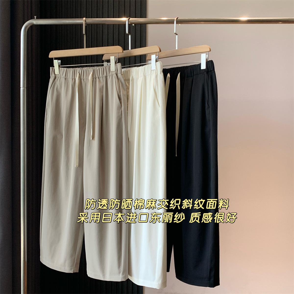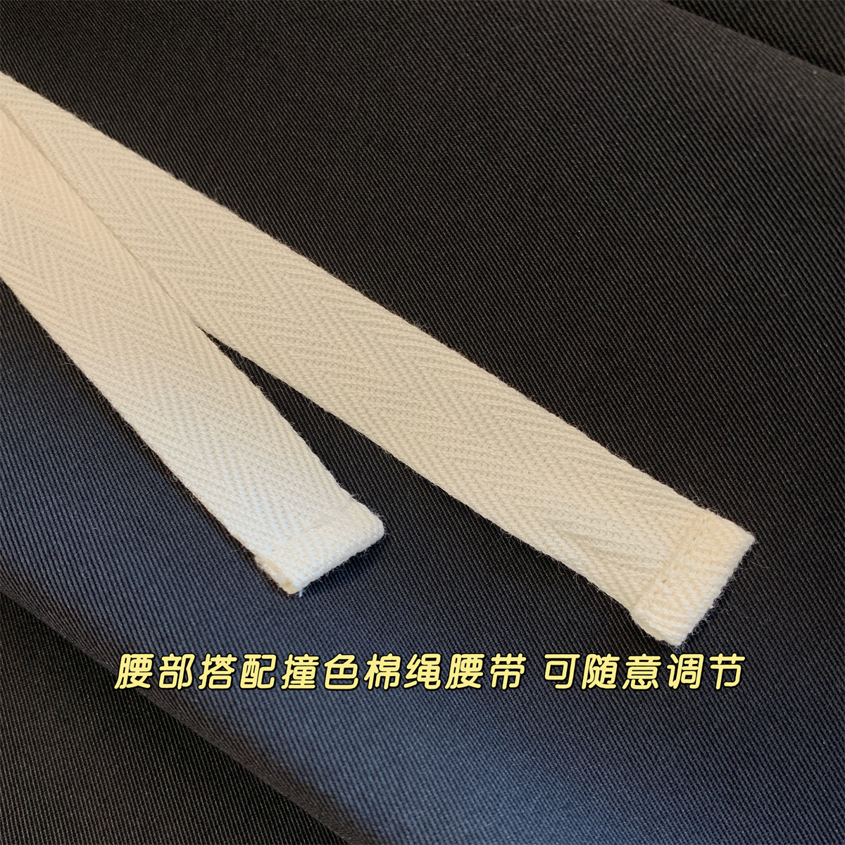 腰部采用松紧腰设计方便穿脱,搭配撞色的棉绳腰带,