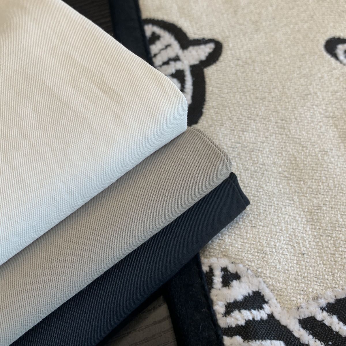 棉麻纱线和涤纶交织使面料呈现斜纹纹理