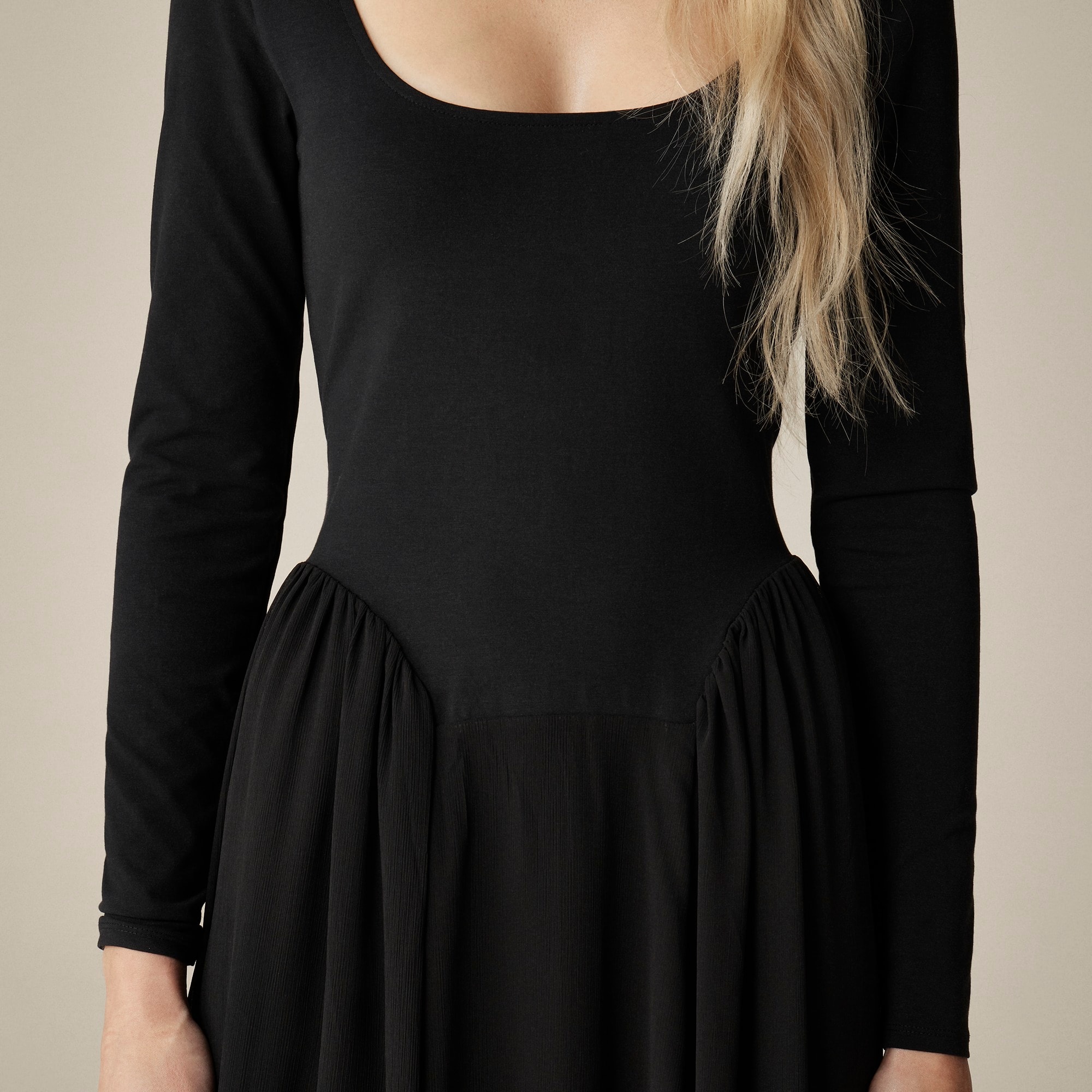 上半身是贴合身体的长袖设计📏(很像舞者穿的紧身衣),贴合度刚刚好,不勒又显身材🔥