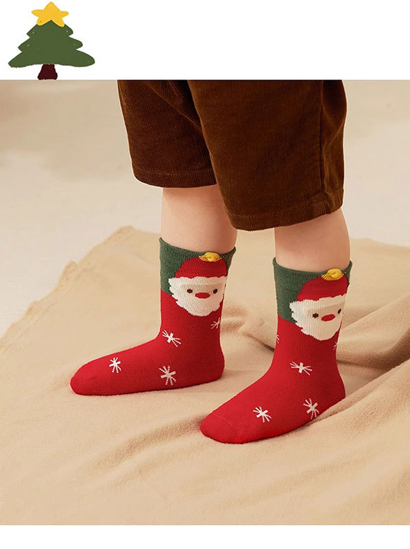 冬季学生圣诞袜儿童红色袜子男女童中筒袜子卡通红色春秋婴童袜子