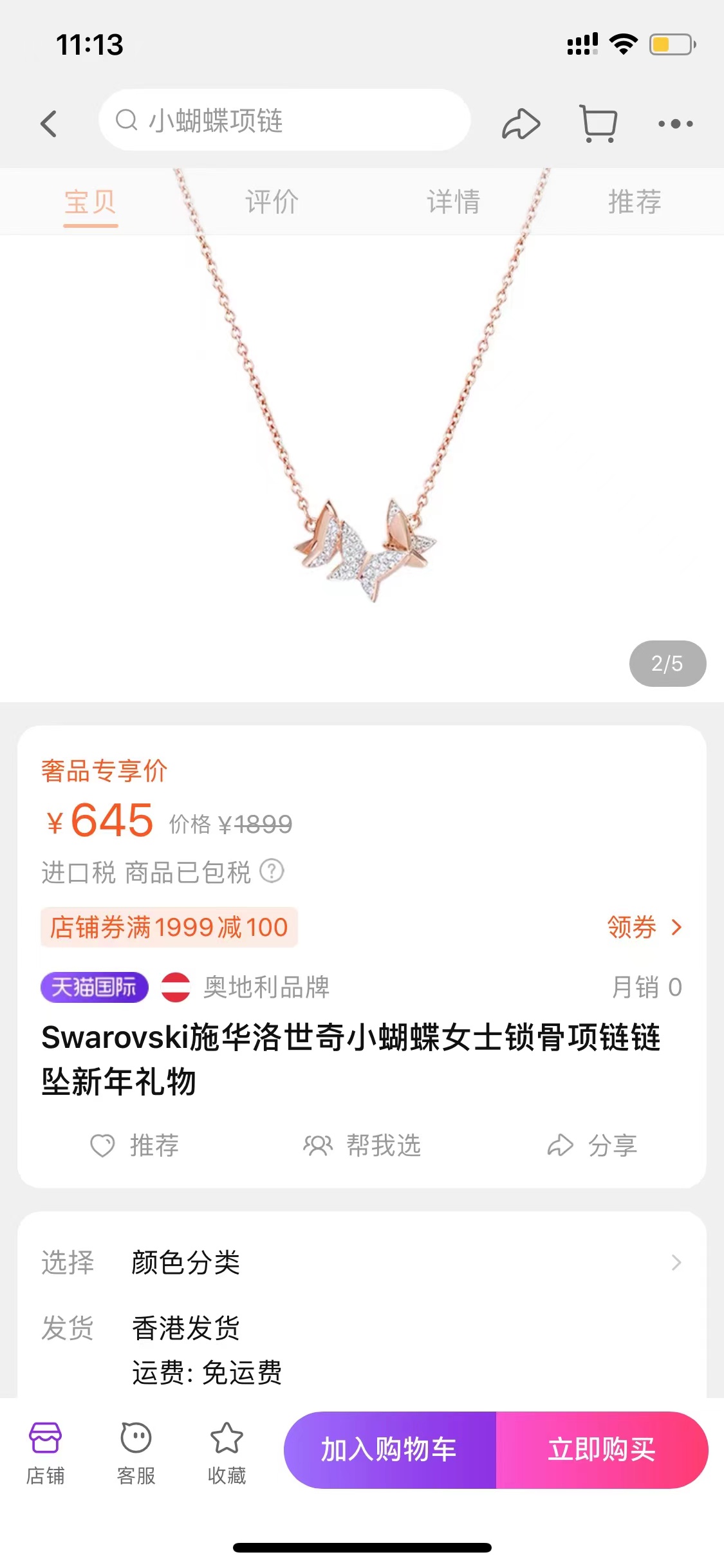 立体小蝴蝶项链 实物特别好看哈 立体的两只小蝴蝶 满满的施华洛水晶 blingbling的闪 美美哒 jing致立体 个性十足 独特的设计理念 特别的美感十足
