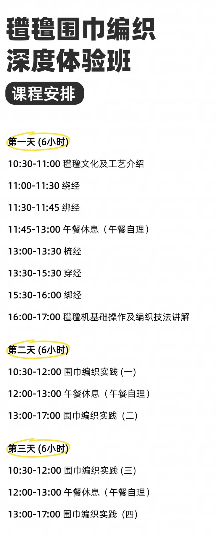 由于体验门店氆氇织机数量有限,经纬纱一经上机无法拆卸。为避免影响其他学员的课程进度。每位学员需在约定时间内完成全部课程。