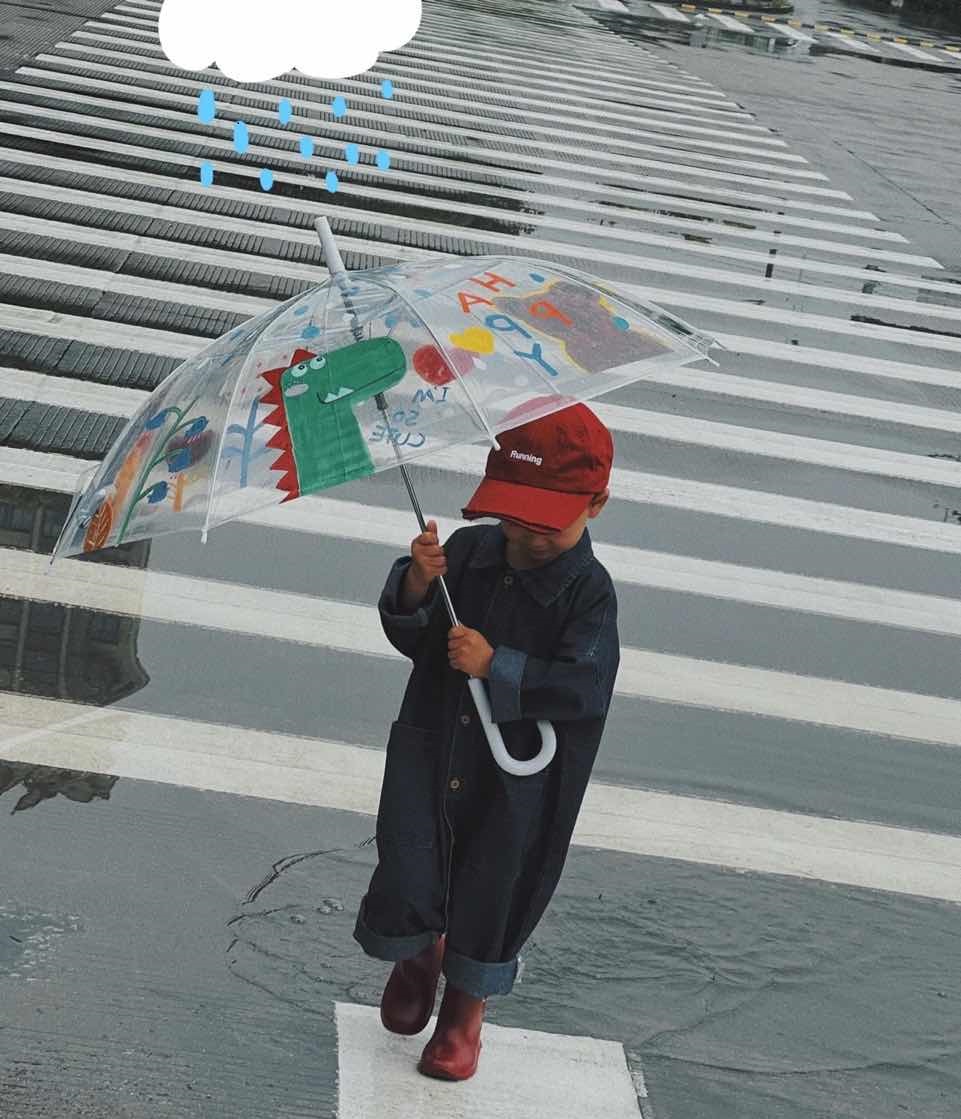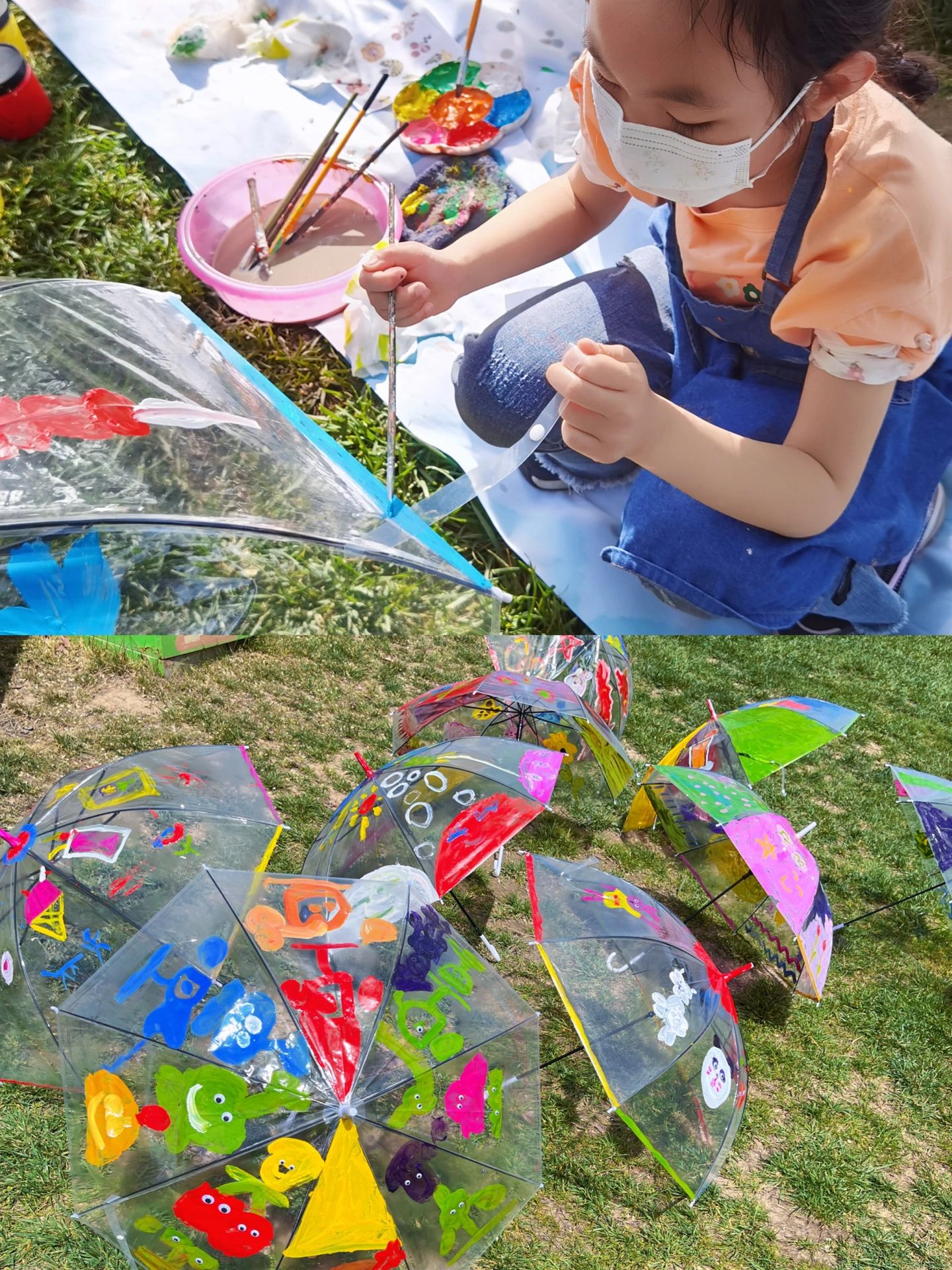 领取一把透明雨伞,和小朋友一起在空白的伞上描绘色彩,拍照记录动手时刻
