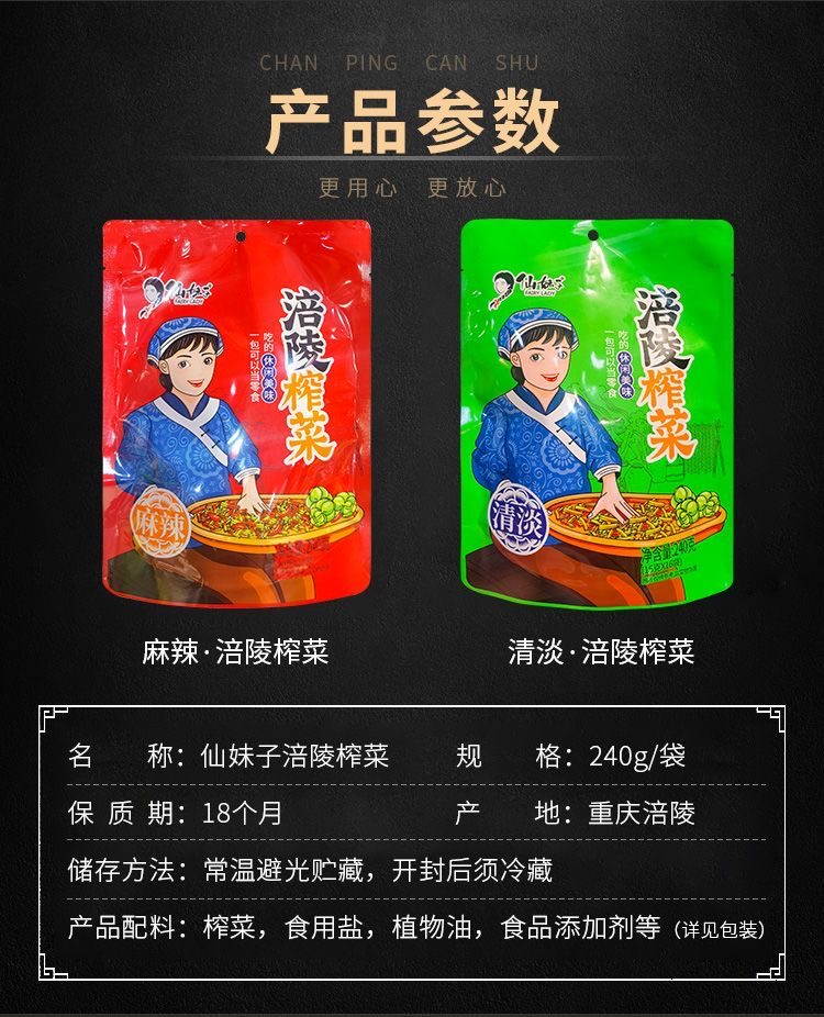 重庆特产仙妹子涪陵榨菜240g即食清淡榨菜下饭菜拌面拌饭小袋装